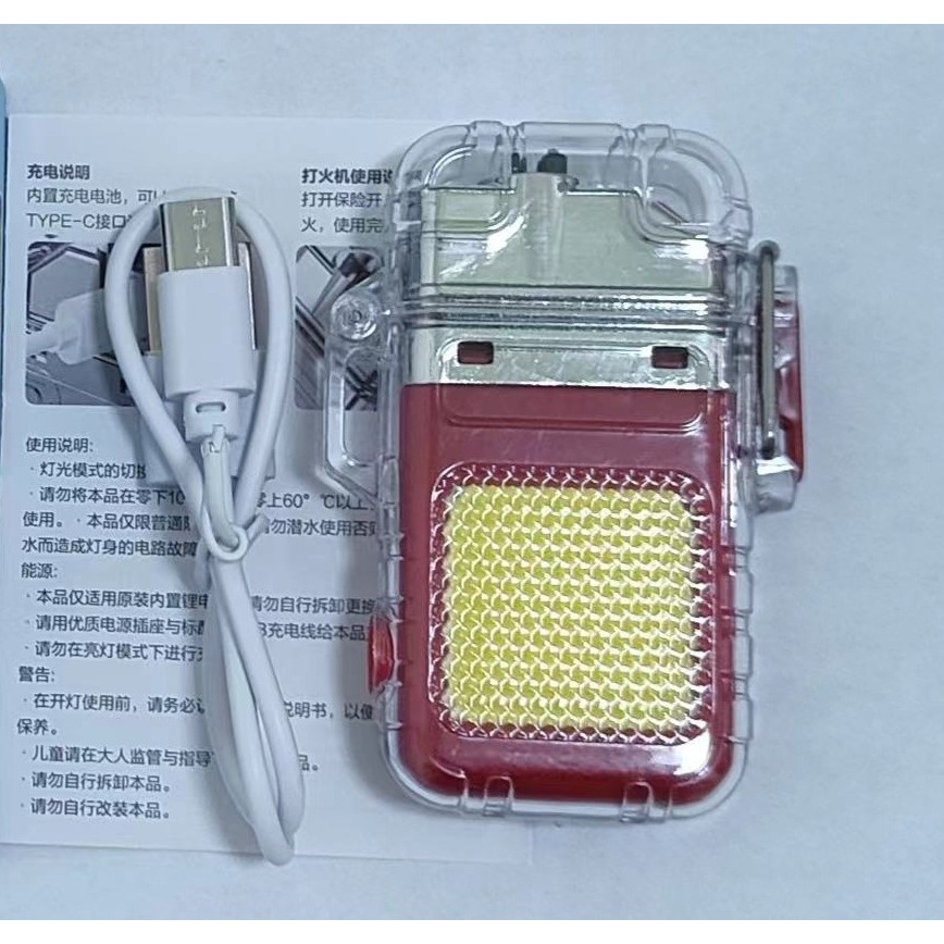 Lanternă Tip Breloc cu Brichetă, , Impermeabilă, 3 Moduri Iluminare, 300 mAh, Încărcare USB-C, COB, Rază de Acțiune 50 - 100 m, 7.4 x 4.9 x 1.7 cm