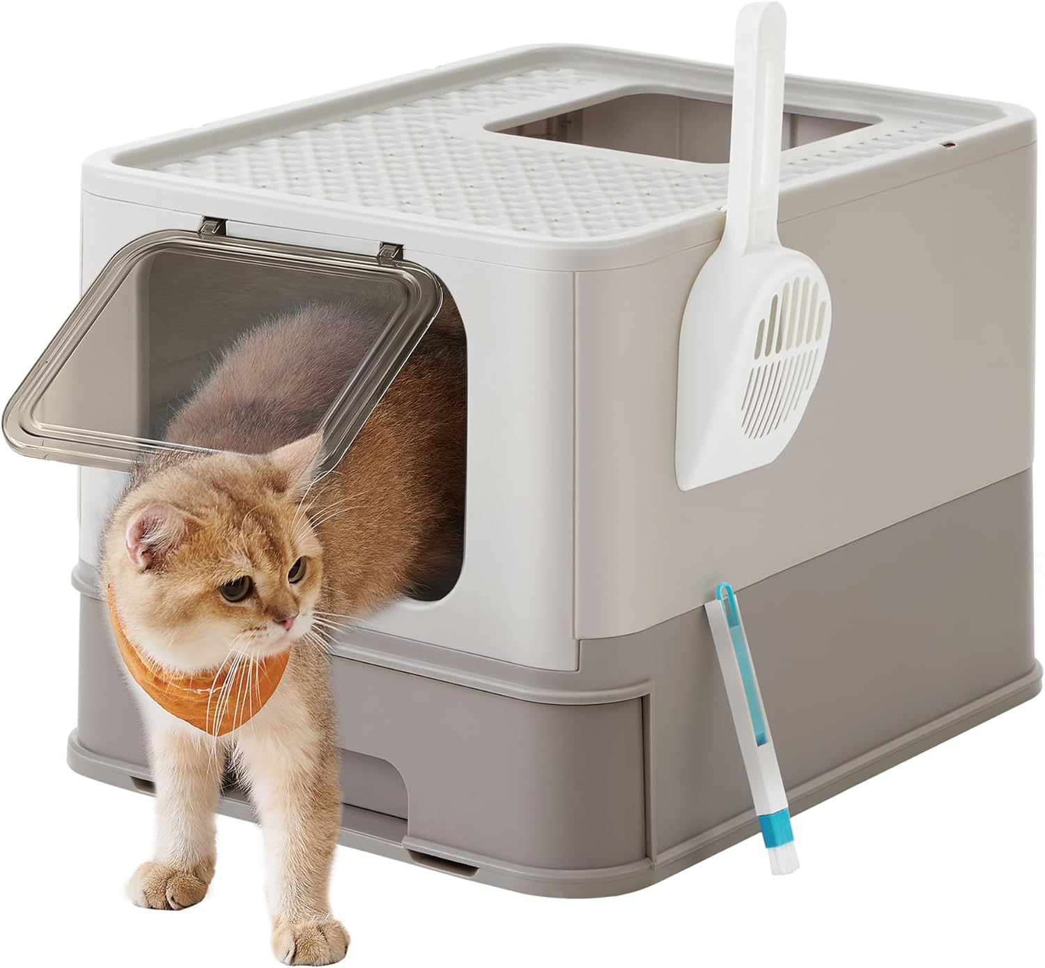 FEANDREA Litiera pentru pisici cu capac, tava extensibila, pentru pisici de pana la 15 kg, 54x43x38cm, gri