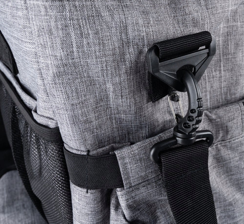 Specificatii: 5 buzunare laterale (inclusiv buzunar pentru servetele, sticla de apa, etc). 1 compartiment principal cu separator detasabil si buzunar cu plasa pe clapeta toate...
