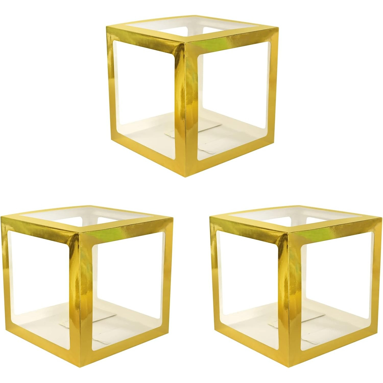 Set 4 cutii pentru baloane - Transparente Contur Auriu - 30 x 30 cm