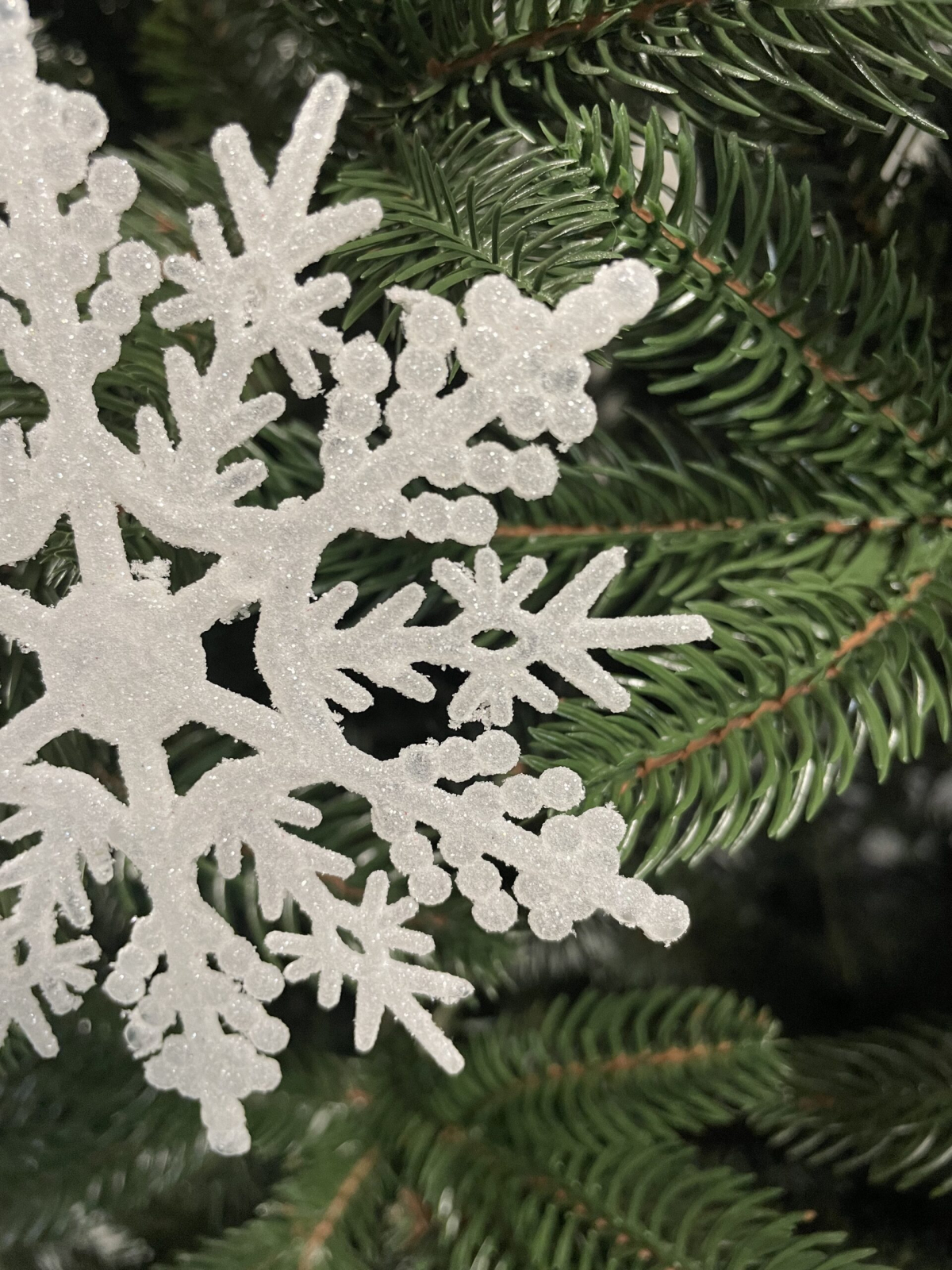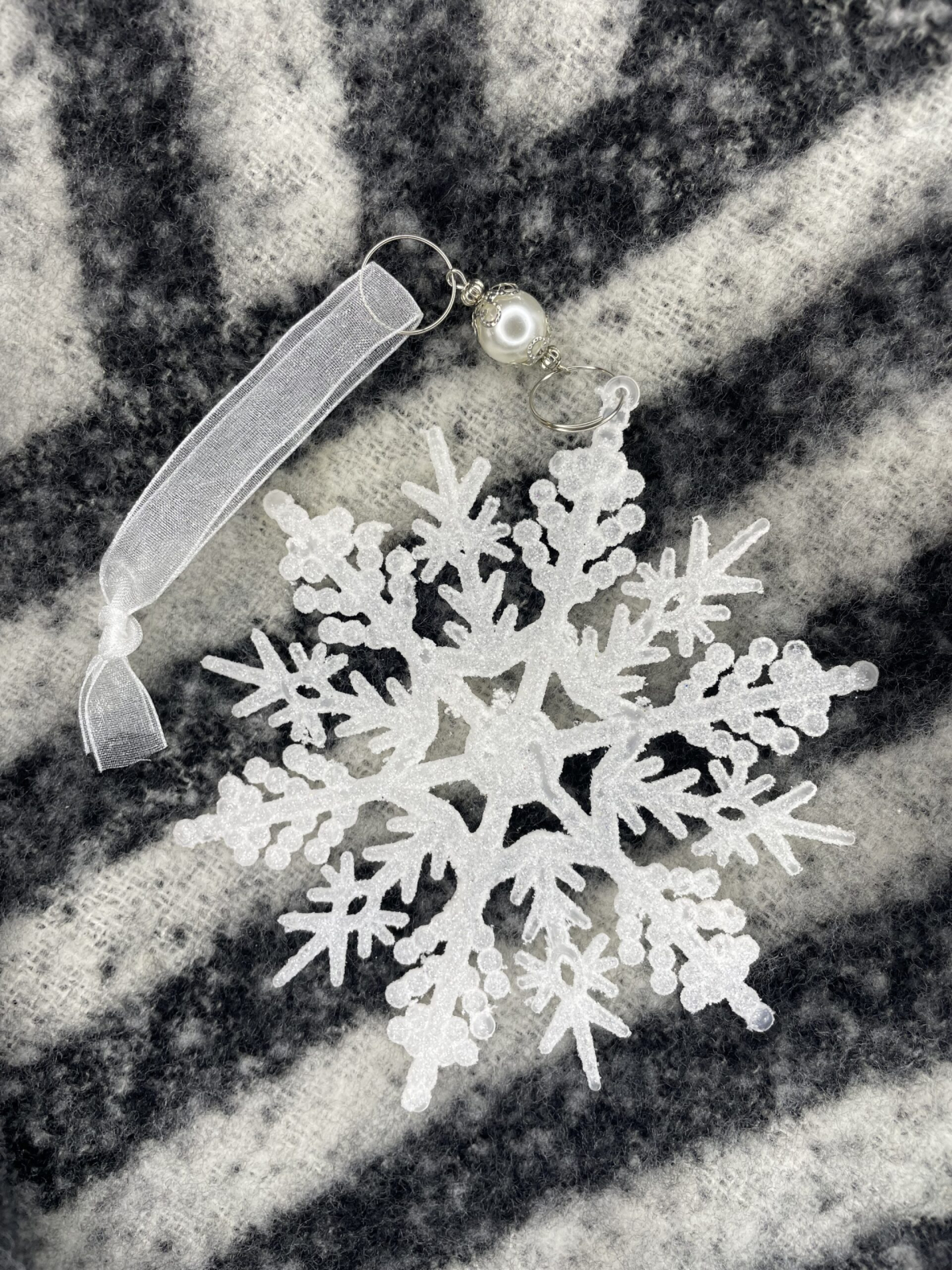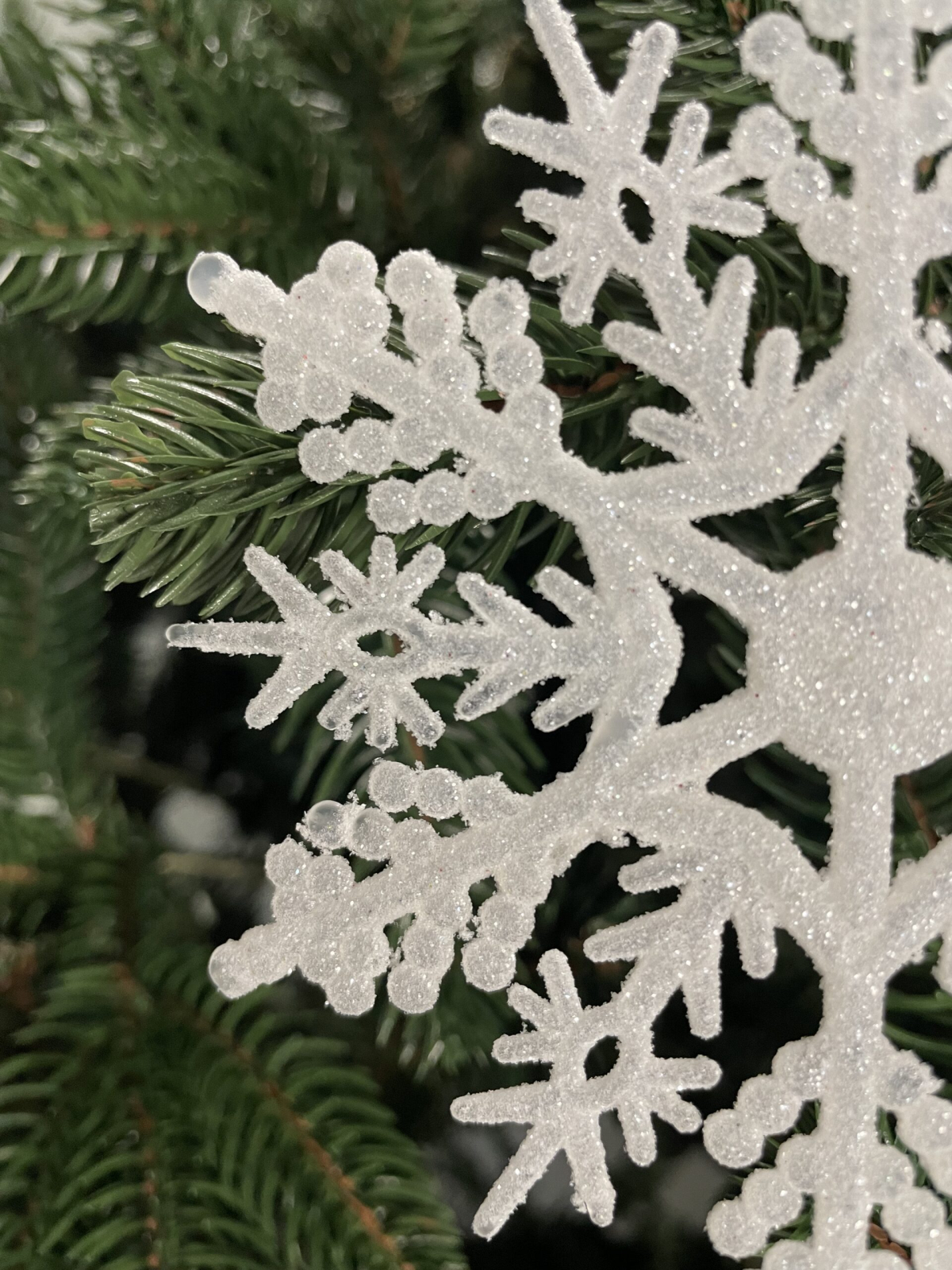 Culoare: alb cu sclipici Material: plastic Numar de bucati: 1 Dimensiune: 17 cm Dimensiunea fulgului de zapada in sine: 13 cm Puncte forte: incasabil, panglica...