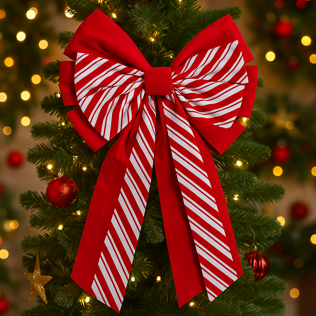 Specificatii tehnice: Material: PE / Poliester Culoare: Rosu si alb Dimensiuni produs: L.40 x P.5 x H.60 cm Scurta descriere: Fundita decorativa de Craciun in dungi rosii si albe aduce un aer vesel si traditional decorului de sarbatoare. Realizata din materiale rezistente si moi, este ideala pentru brad, usi, ferestre sau ambalaje de cadouri, oferind o nota clasica si festiva. Caracteristici principale: Design cu dungi rosii si albe, inspirat de Craciun Material moale si rezistent Usor de fixat pe diverse suprafete Dimensiune mare, potrivita pentru decoruri vizibile Creeaza o atmosfera festiva si eleganta