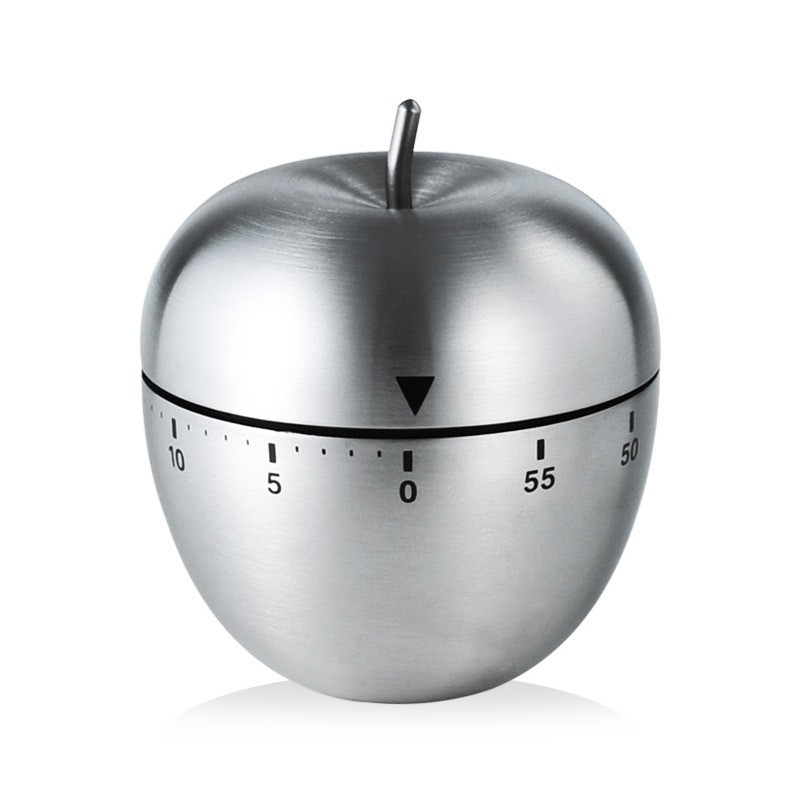 Cronometrul în formă de măr este ajutorul perfect în bucătărie, combinând funcționalitatea cu un design modern din oțel inoxidabil. Ideal pentru gătit, copt, studiu sau alte activități care necesită temporizare precisă, acest cronometru mecanic este un accesoriu practic și durabil pentru orice casă.
