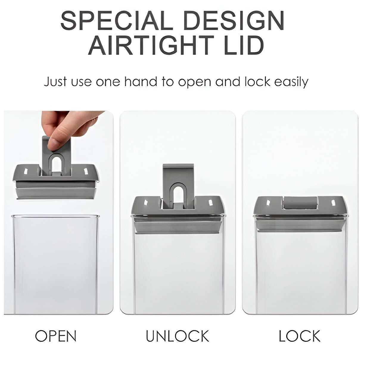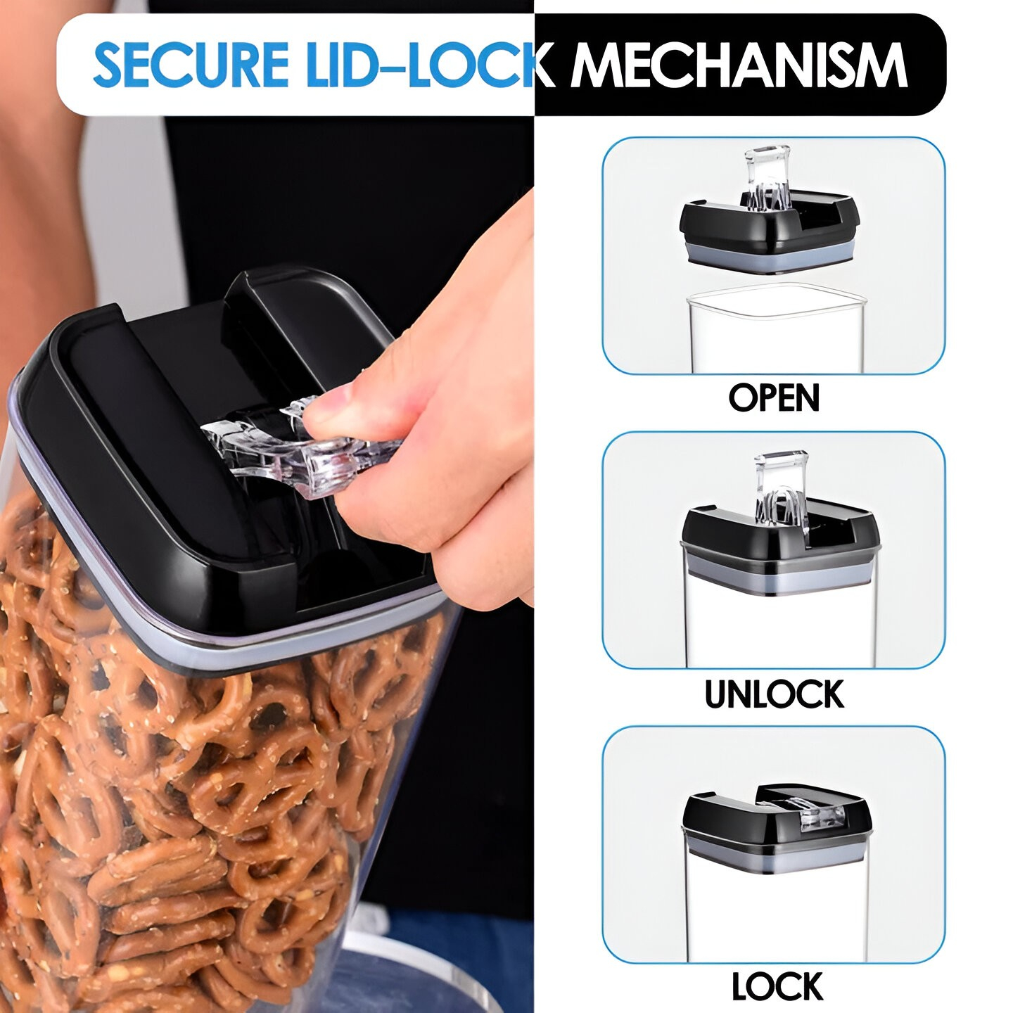 -Etanșe pentru a menține alimentele uscate și proaspete: cu un mecanism special de etanșare, puteți deschide sau închide recipientele noastre din plastic în siguranță folosind doar două degete. Pur și simplu ridicați inelul pentru a deschide sau apăsați inelul în jos pentru a bloca cutia.
