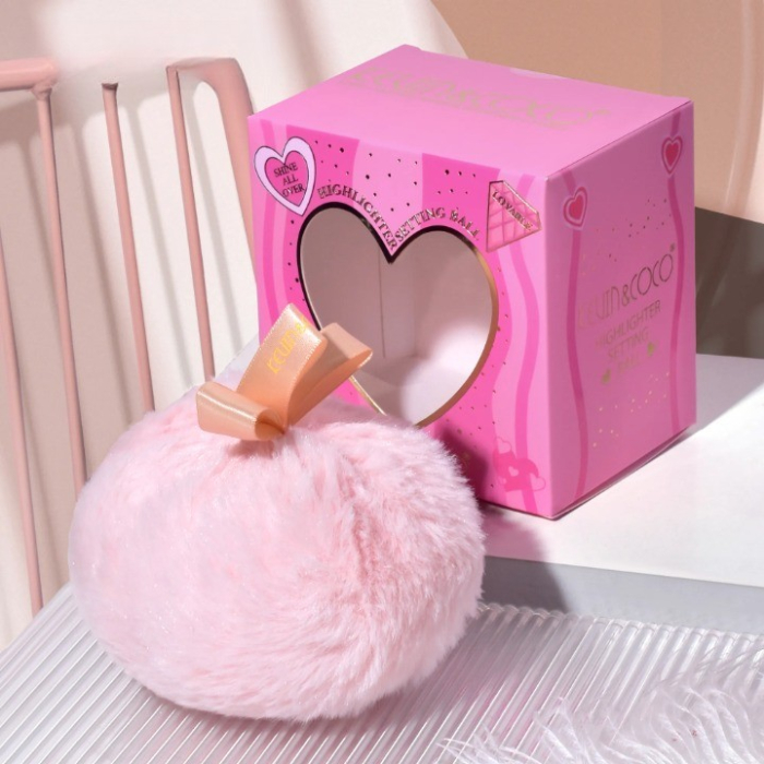 Aplicator pentru Iluminator/Pudra, Tip Buretel Pufos, Kevin & Coco, 9.6 x 9.6 x 7.2cm, Roz