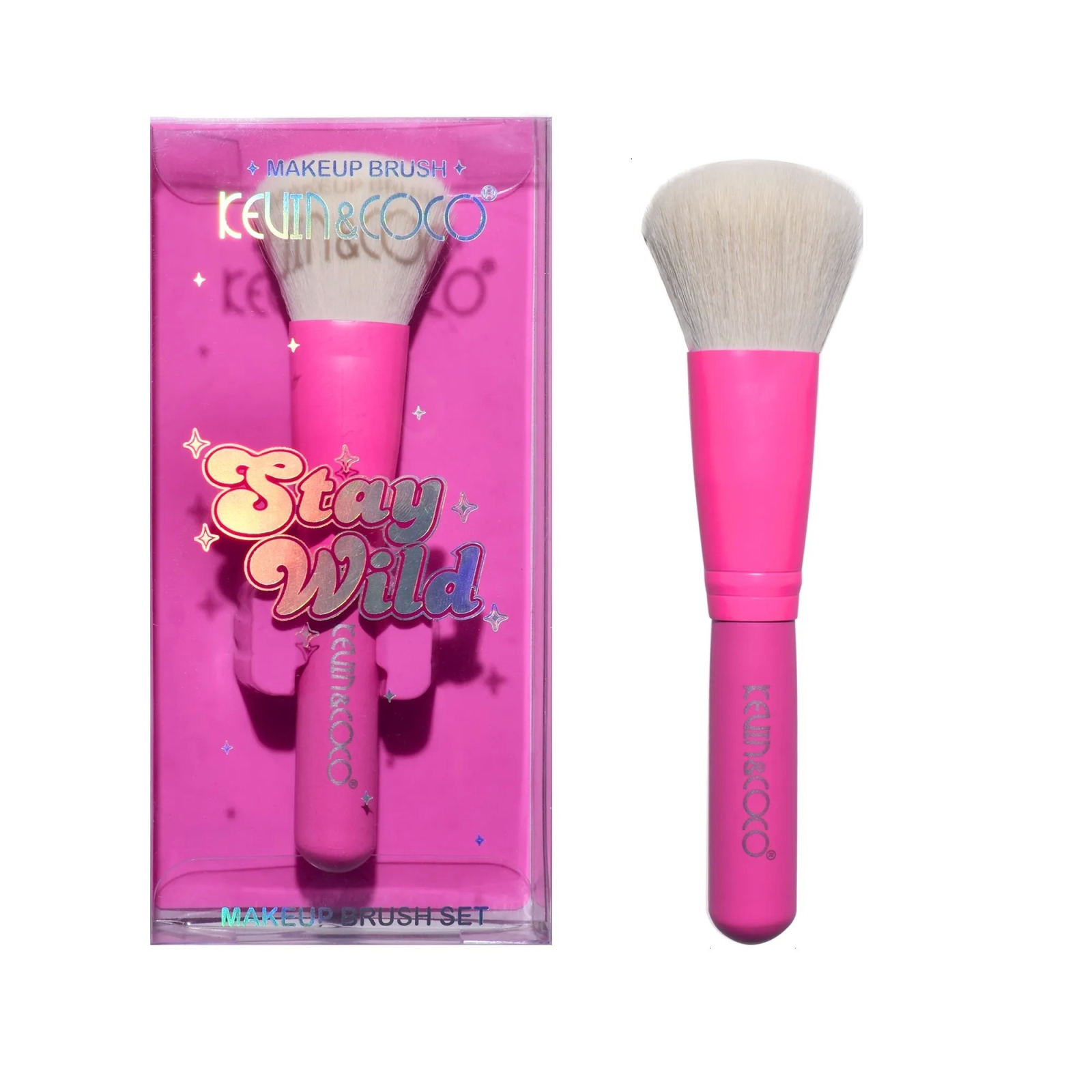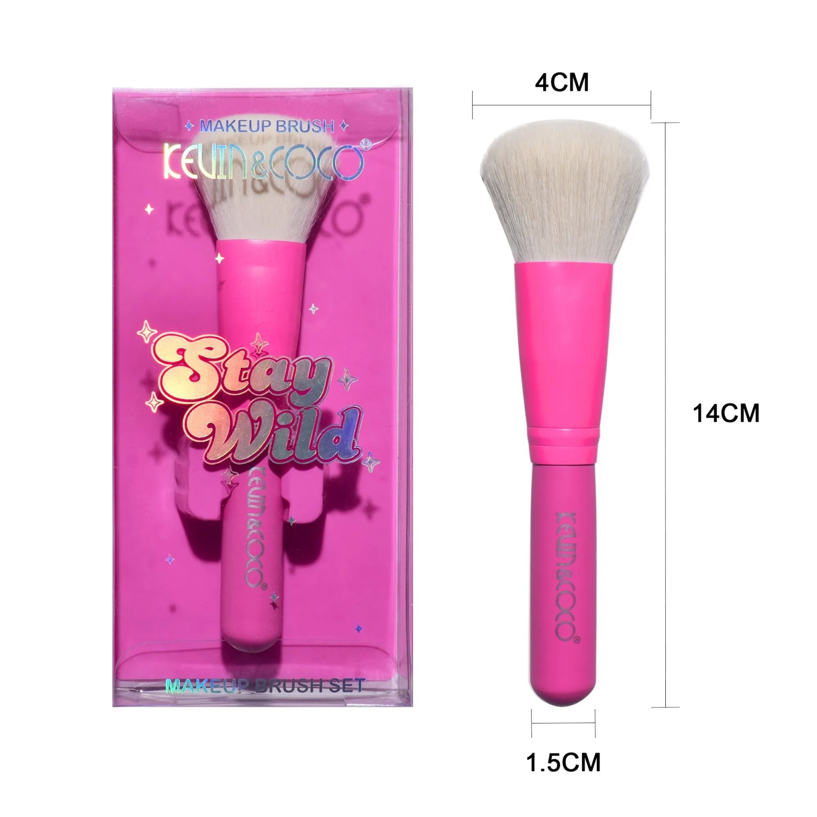Pensula de Machiaj, KEVIN & COCO, Stay Wild, 14 x 4 x 1.5 cm, Roz