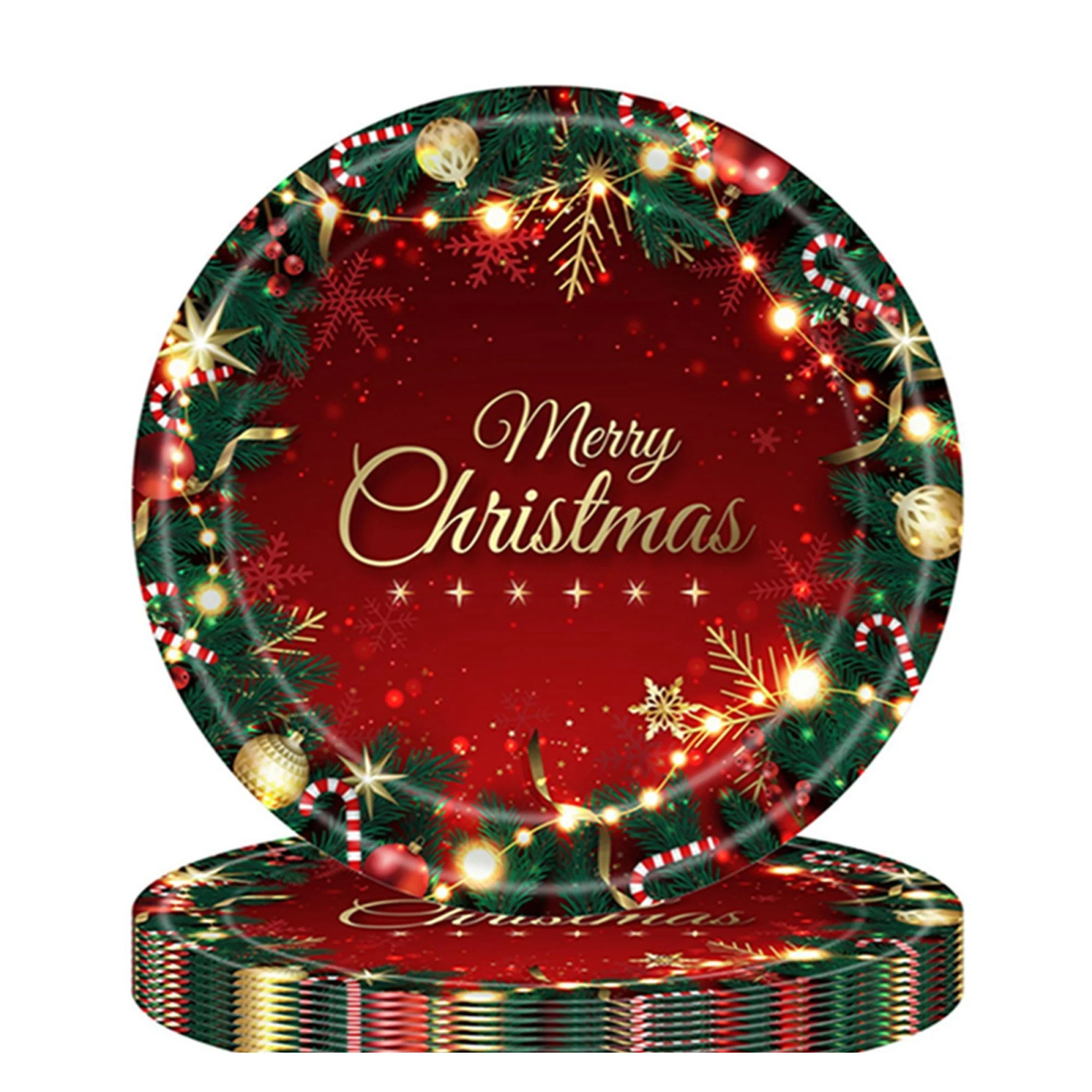 Set 16 Farfurii de Unică Folosință, , Model "Merry Christmas", Tematica Crăciun, 23 cm, Roșu/Verde