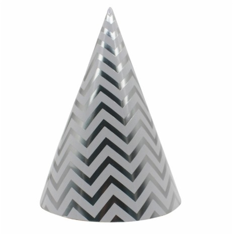 Set 6 Coifuri, , Petrecere Copii, din Carton, 20 x 13.5 cm, Model 8 Valuri, Argintiu