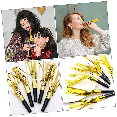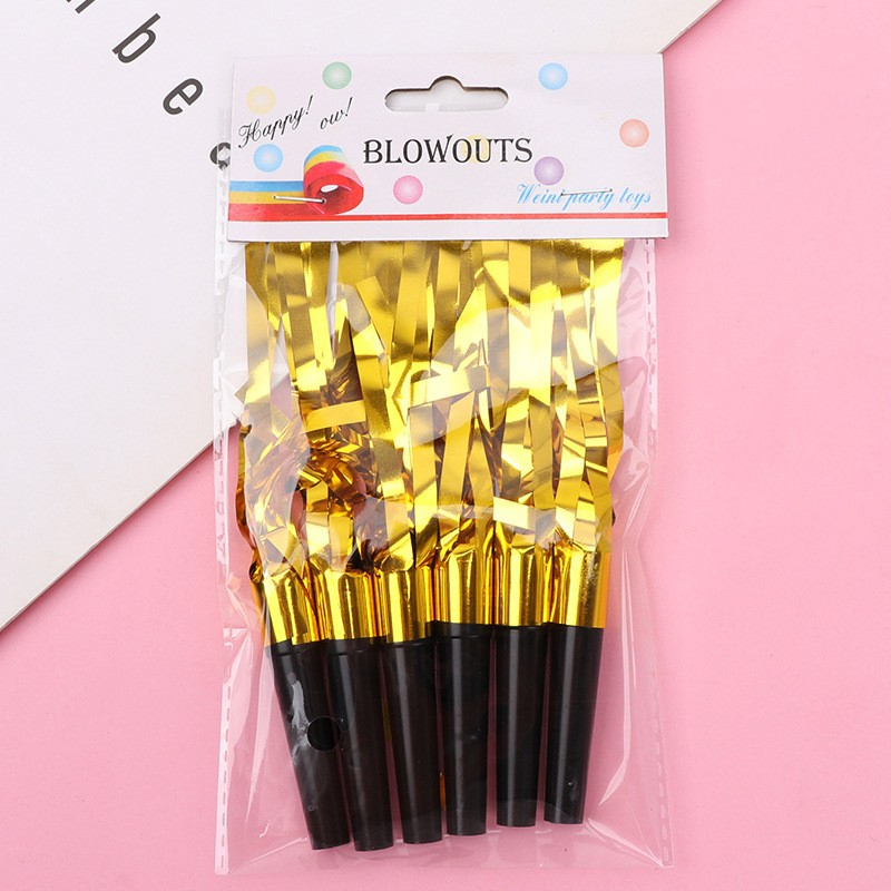 Set 6 Fluiere Party cu Franjuri, , din Plastic, Auriu