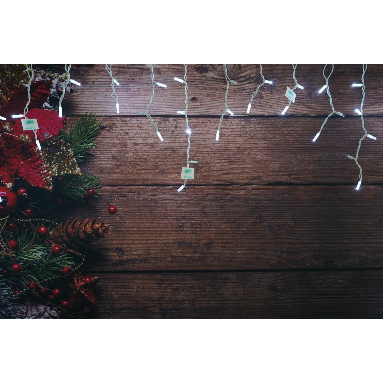 Instalatie de Craciun ยฎ Tip Franjuri cu Flash, IP65, Sectiune 5 m, 120 LED-uri, Interconectabila, Fir Alb, Alb Rece, Atentie! Nu contine Alimentator