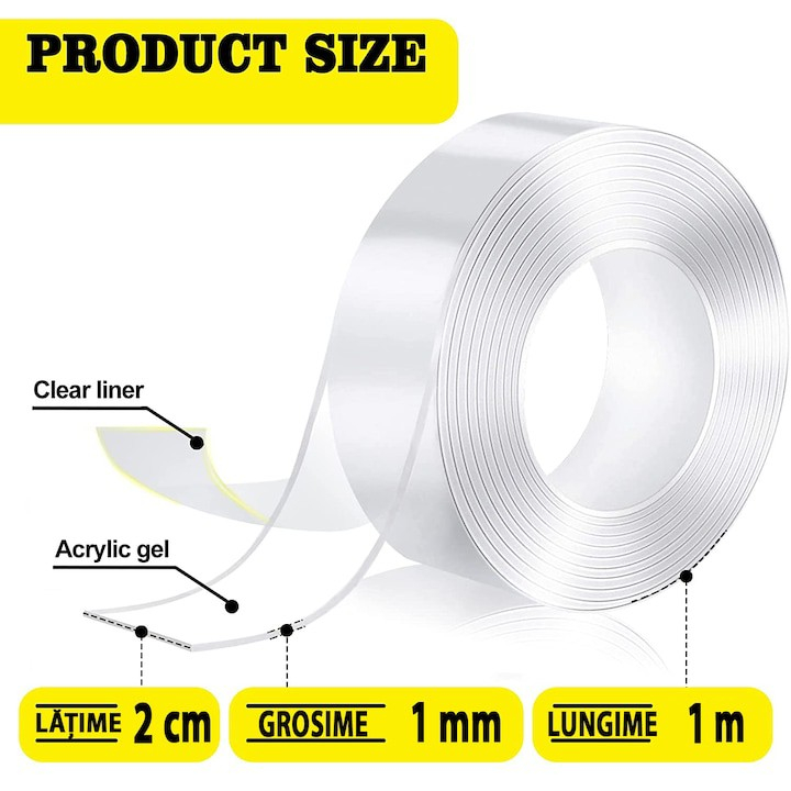Descopera solutia ideala pentru fixare rapida si eficienta in orice colt al casei tale cu Banda Dublu Adeziva ! Fabricata cu tehnologie nano de ultima generatie, aceasta banda transparenta si versatila ofera o aderenta puternica, fara a deteriora suprafetele.