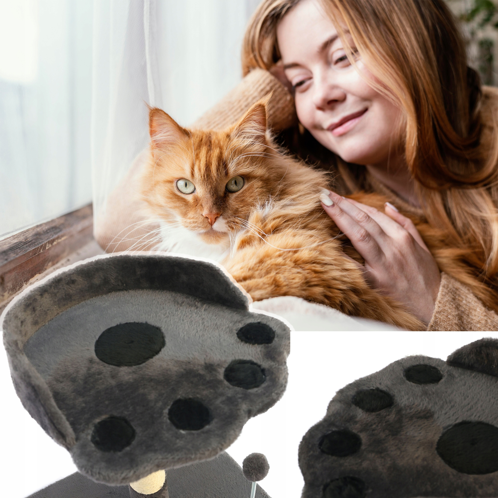 Ansamblu de joaca pentru pisici, cu culcus si loc pentru zgariat, minge, 48cm, gri inchis