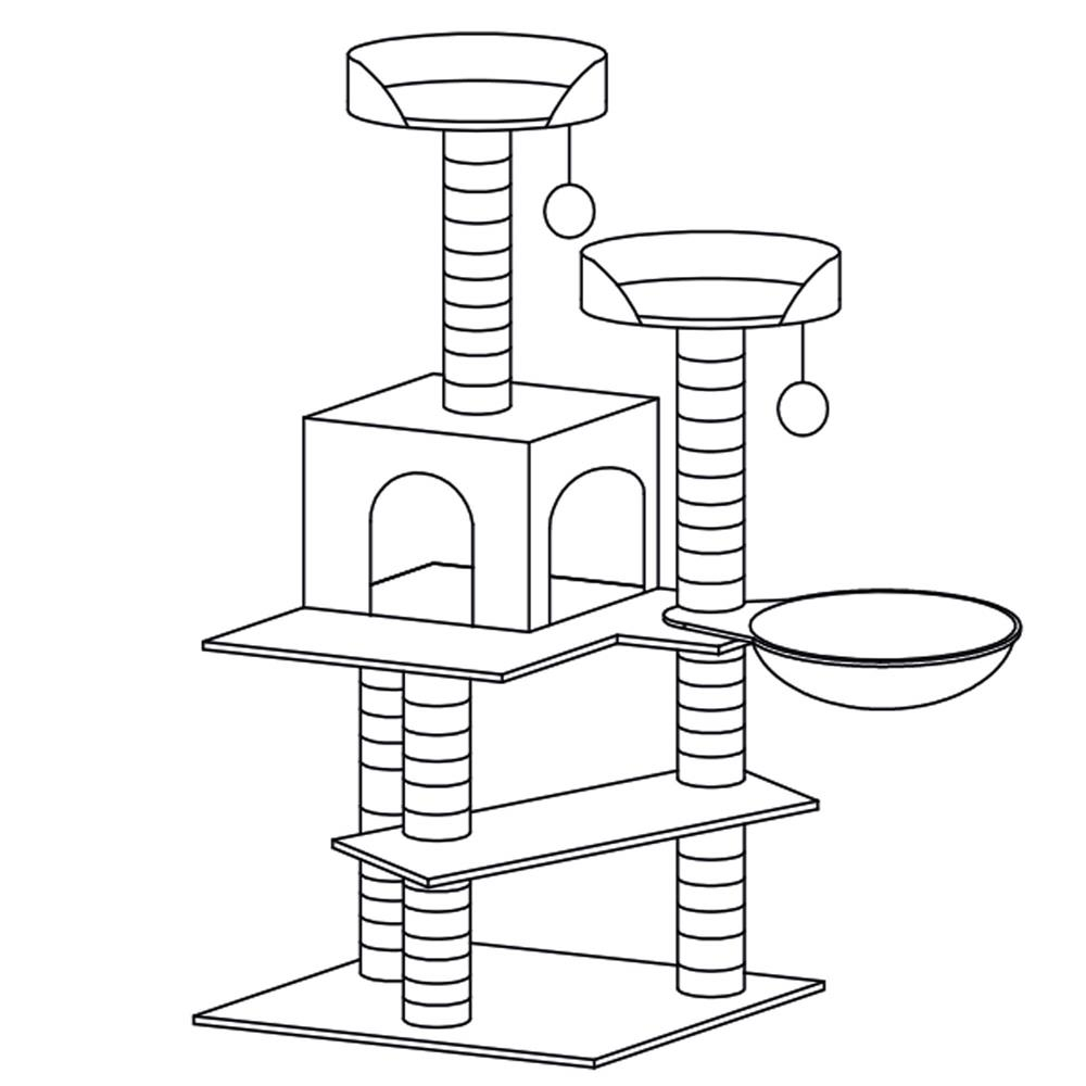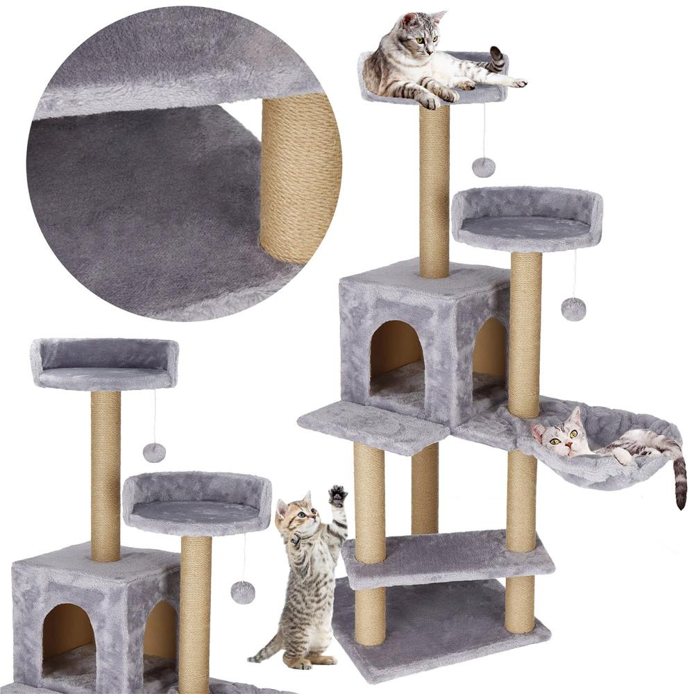 Ansamblu de joaca pentru pisici, cu loc pentru zgariat, ascuns, culcus, mingi, 129cm, gri