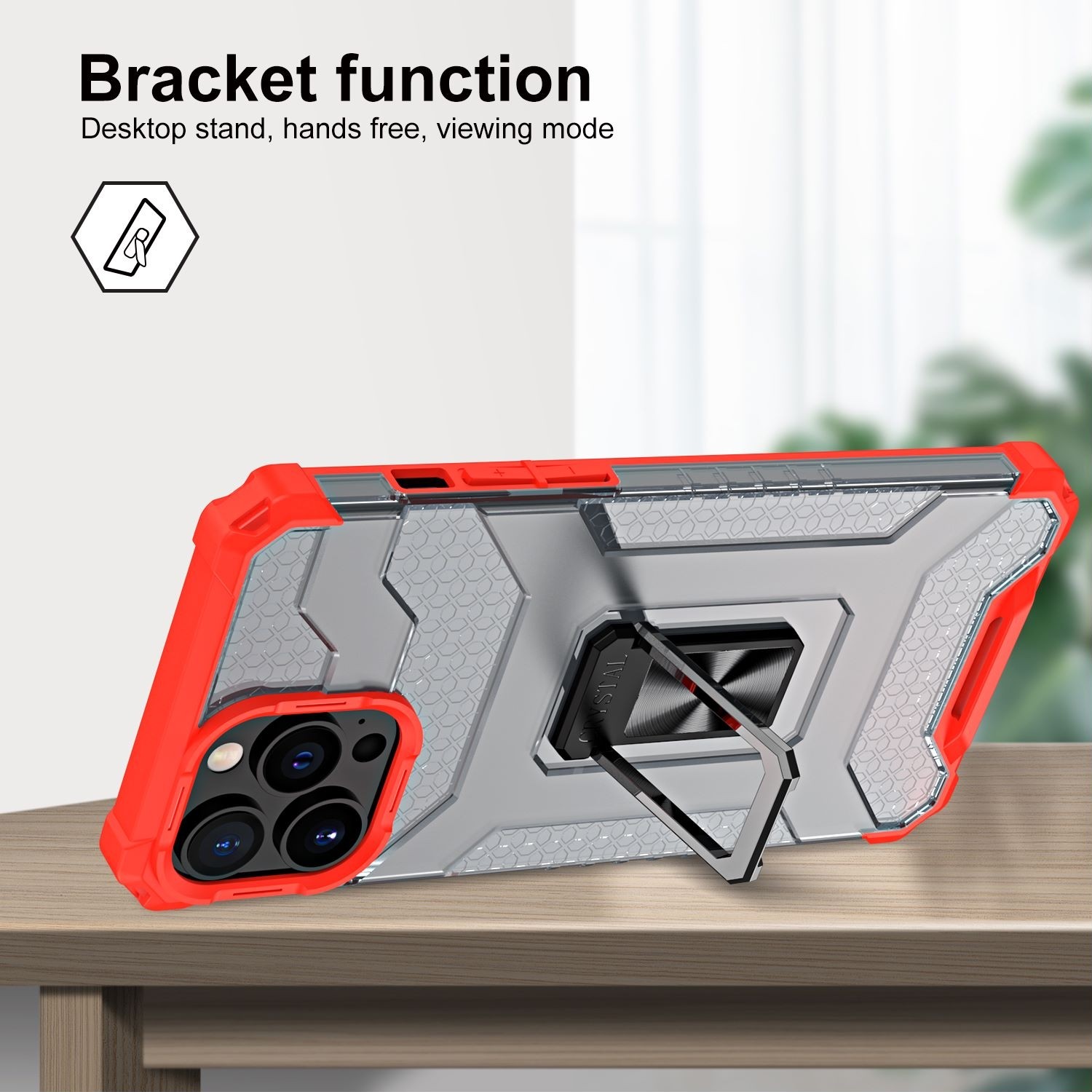 Husa de protectie Acrylic Armor cu suport Rosu, IPhone 13 Pro Max