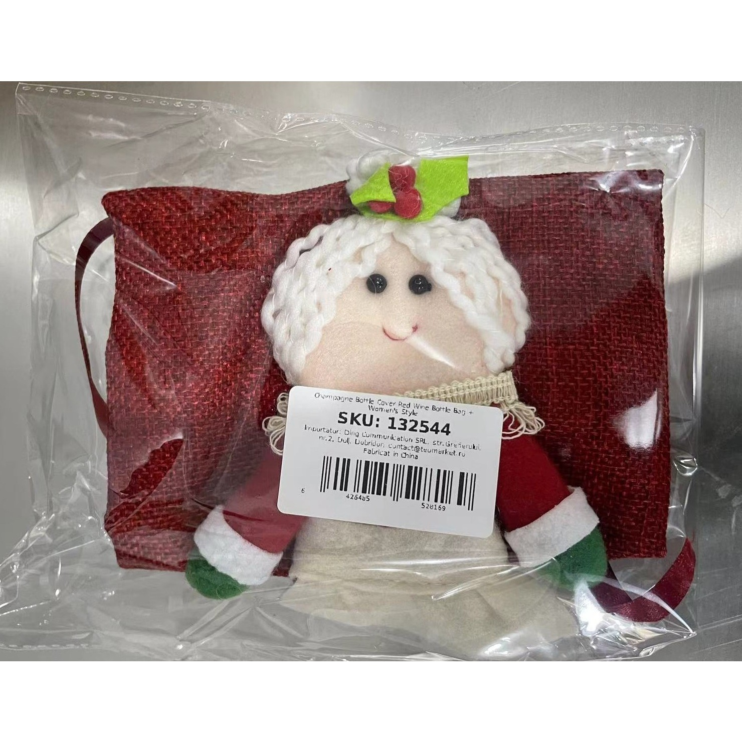 Decorațiune pentru Sticla de Vin , Tematică Crăciun, Model Doamna Crăciun, Rosu, 14 x 29 cm