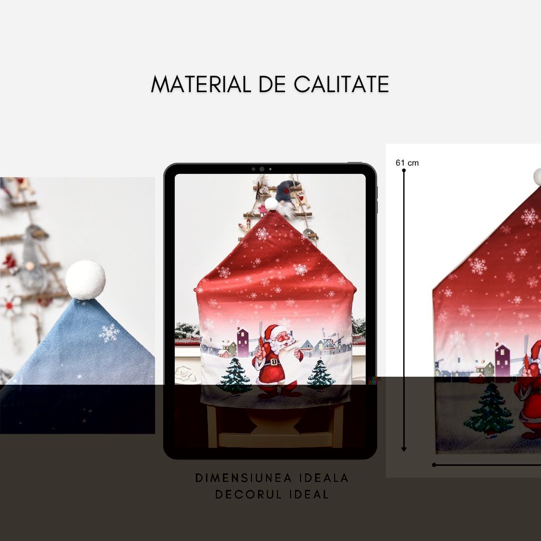 Adaugă un strop de spirit festiv în casa ta cu această husă pentru scaun , decorată cu tematică de Crăciun. Realizată din material textil/poliester de calitate, husa este confortabilă, ușor de montat și protejează scaunul, oferindu-i în același timp un aspect festiv și atractiv.