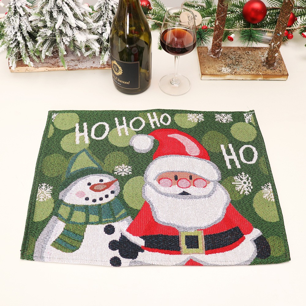 Servet de Masa, , Model Mos Craciun, Scris HoHoHo, Tematica Craciun, Prosop pentru Masa, Bumbac si Fibre Sintetice, 43x33 cm, Verde