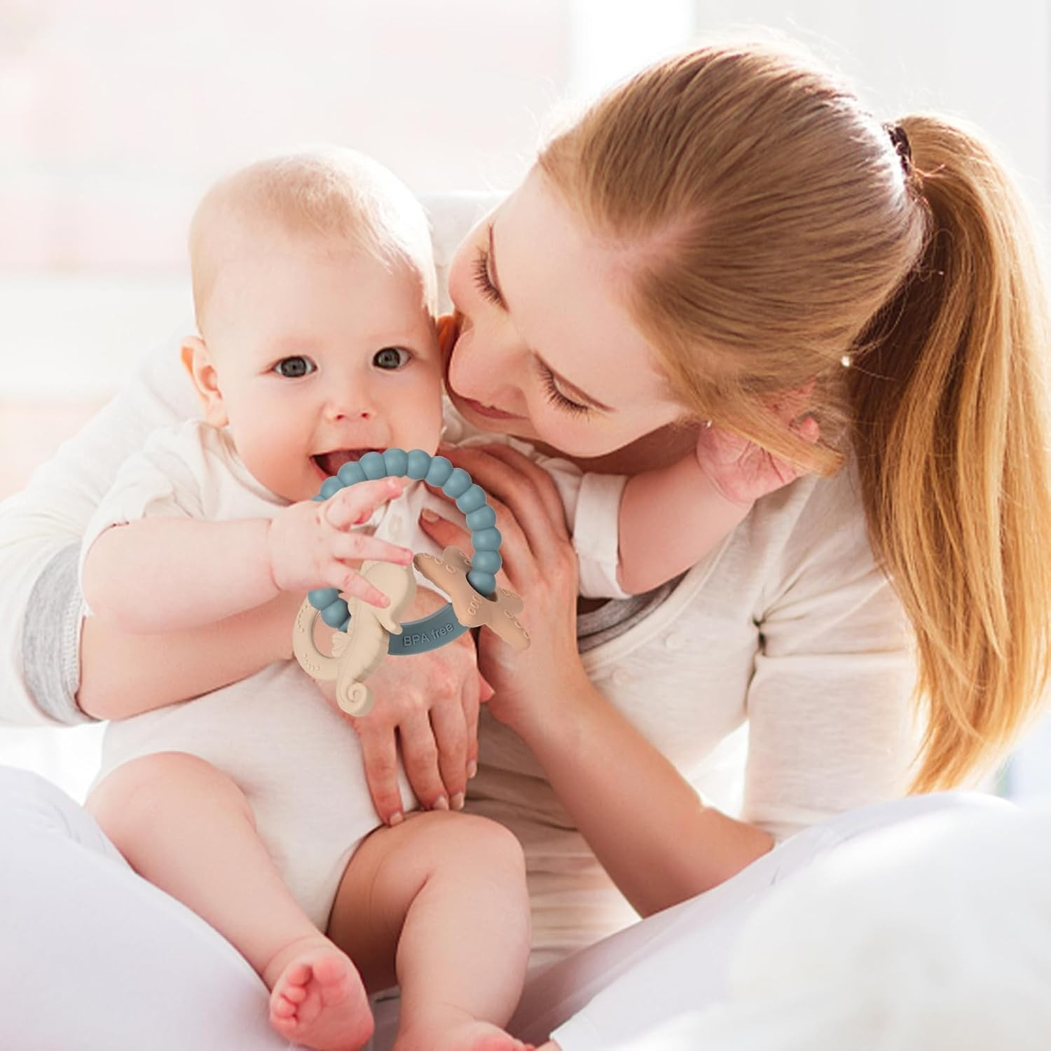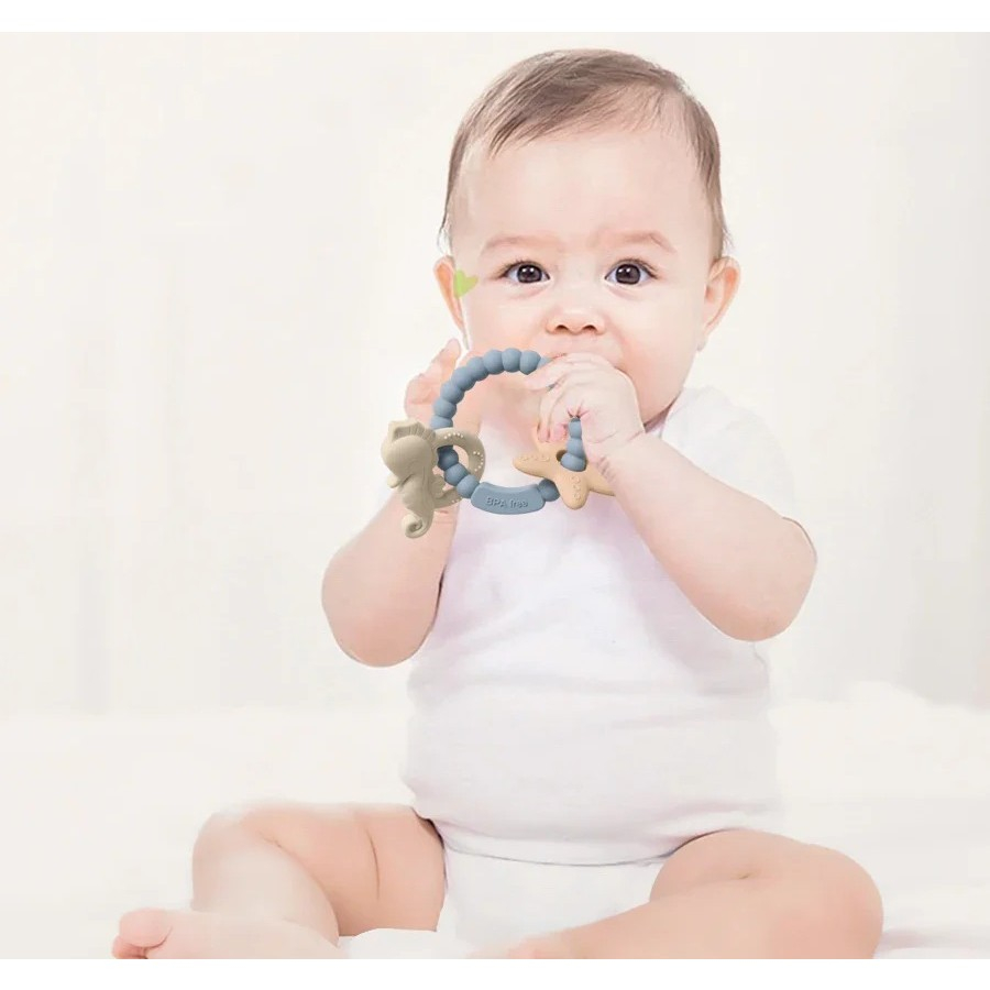 Jucărie Dentiție Bebeluși, , Tip Brățară, Model Căluț și Stea de Mare, +3 luni, din Silicon, fără BPA, 8.1 x 8.1 x 1.2 cm