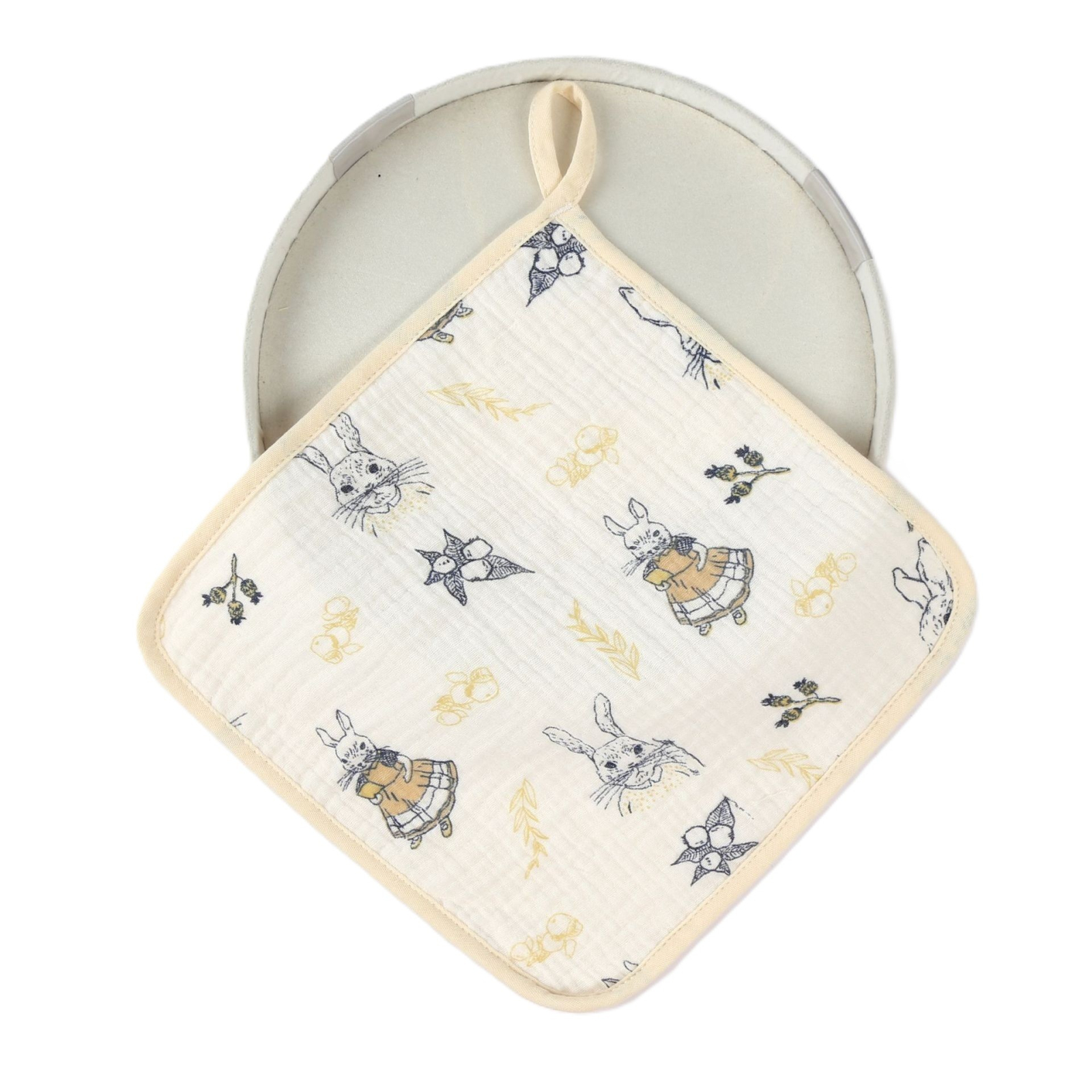 Prosop Absorbant, , din Bumbac, 25 x 25 cm, Model Iepurasi, cu Agatatoare, Bej