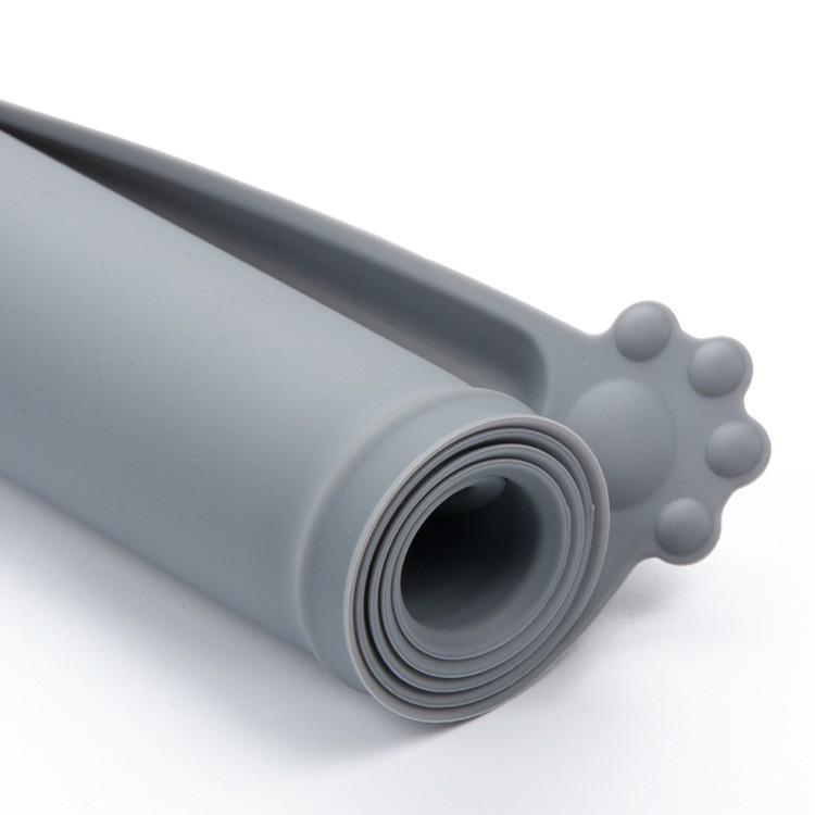 Covoras din silicon pentru animale , pentru bol de apa si mancare, antiderapant, margini ridicate pentru a mentine apa, 48.5x30 cm, Gri