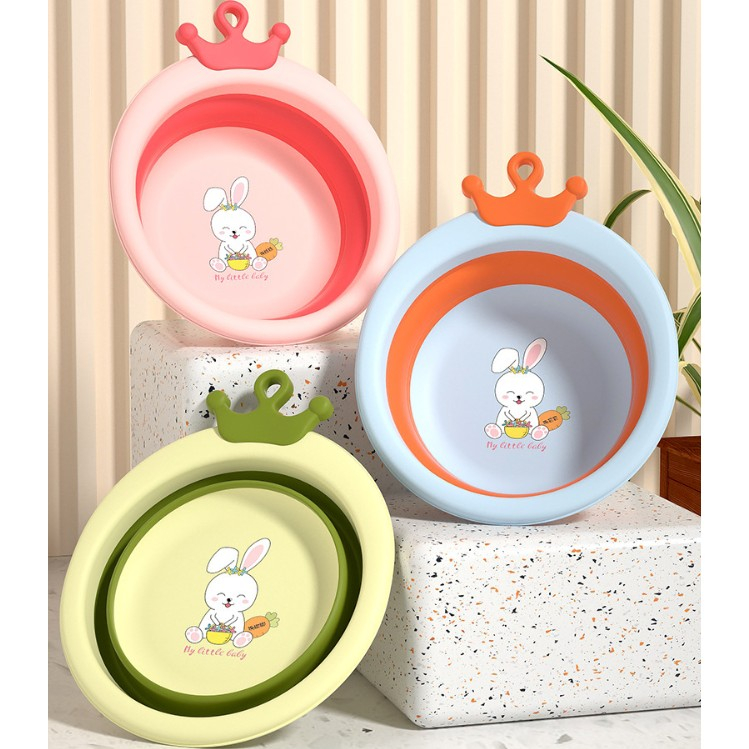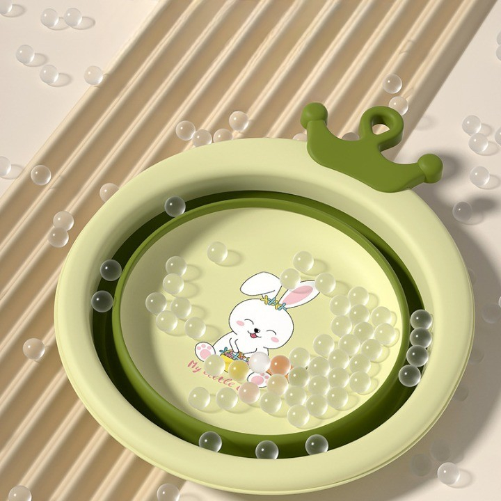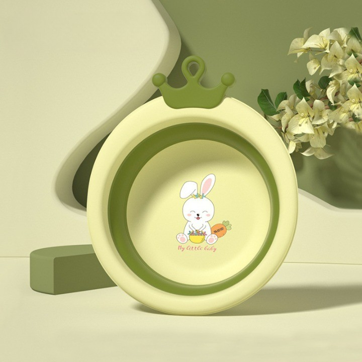 Cada Pliabila pentru Baie pentru Copii, , Cadita pentru Bebelusi, Model Rotund cu Iepuras, Verde, 30x31x3.5 cm, 3.3 L
