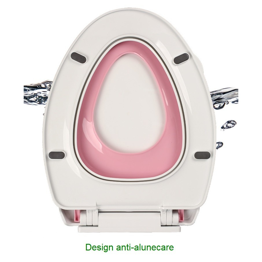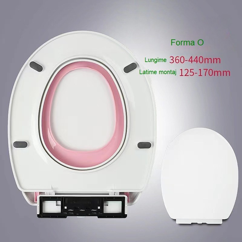 Capac de Toaleta 3 in 1, , pentru Copii +3 Ani si Adulti, Coborare Lenta si Silentioasa, Instalare Usoara, din PP5 , in Forma de O, Alb/Roz