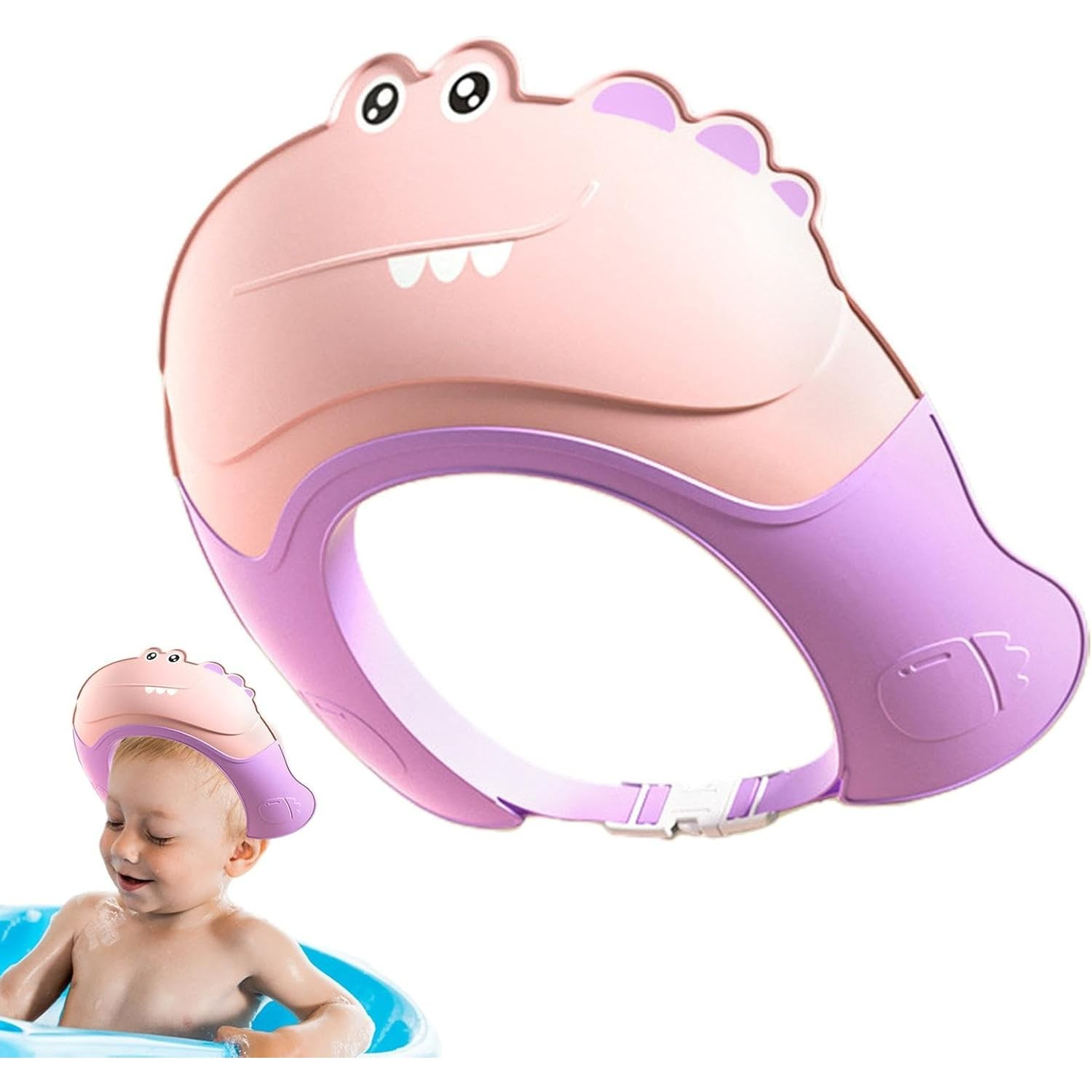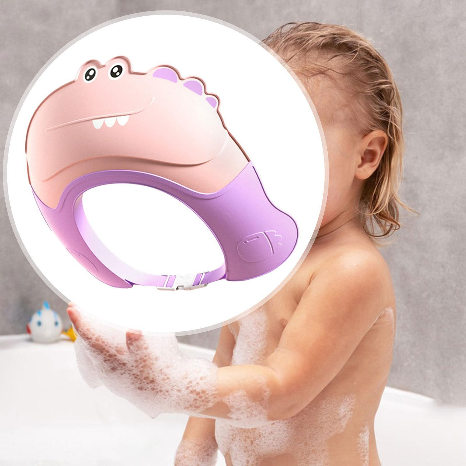 Casca de Dus, , Previne Scurgerea Apei si Samponului pe Fata, 0-12 Ani, Ajustabila, din TPE+PP, 20 x 23 cm, Model Crocodil, Roz/Mov