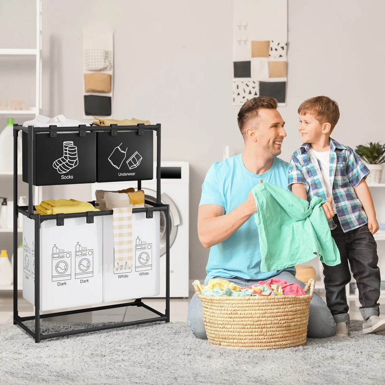 ✔ Stocare eficienta– cosurile permit sortarea hainelor dupa categorii