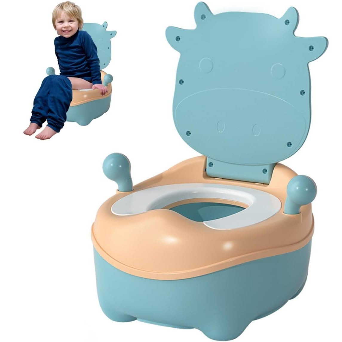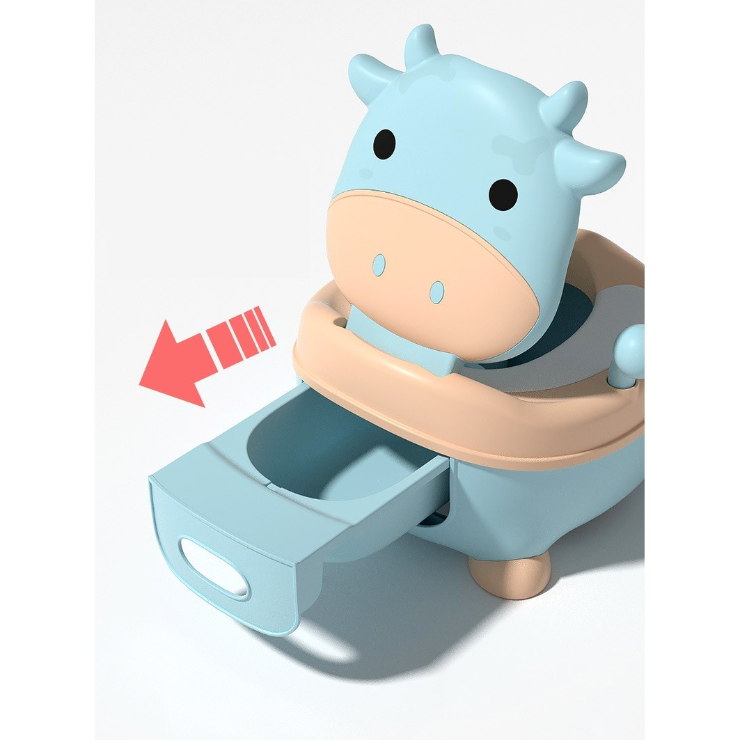 Olita pentru Copii, , +1an, Portabila, Model Vacuta, cu Capac, Prietenoasa, Non-Toxic, Compartiment Detasabil, cu Manere, cu 4 Picioare, Usor de Curatat, Albastru