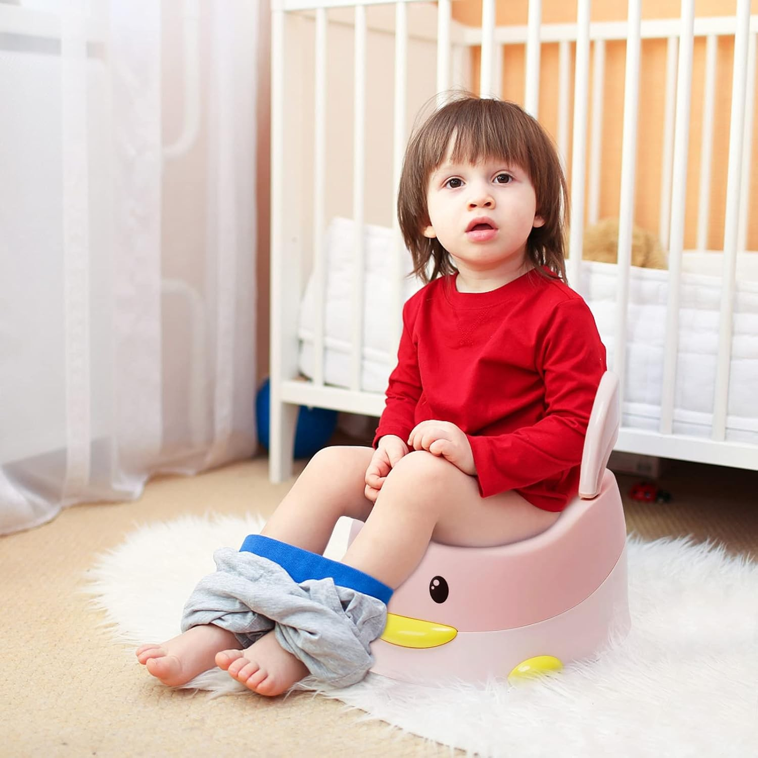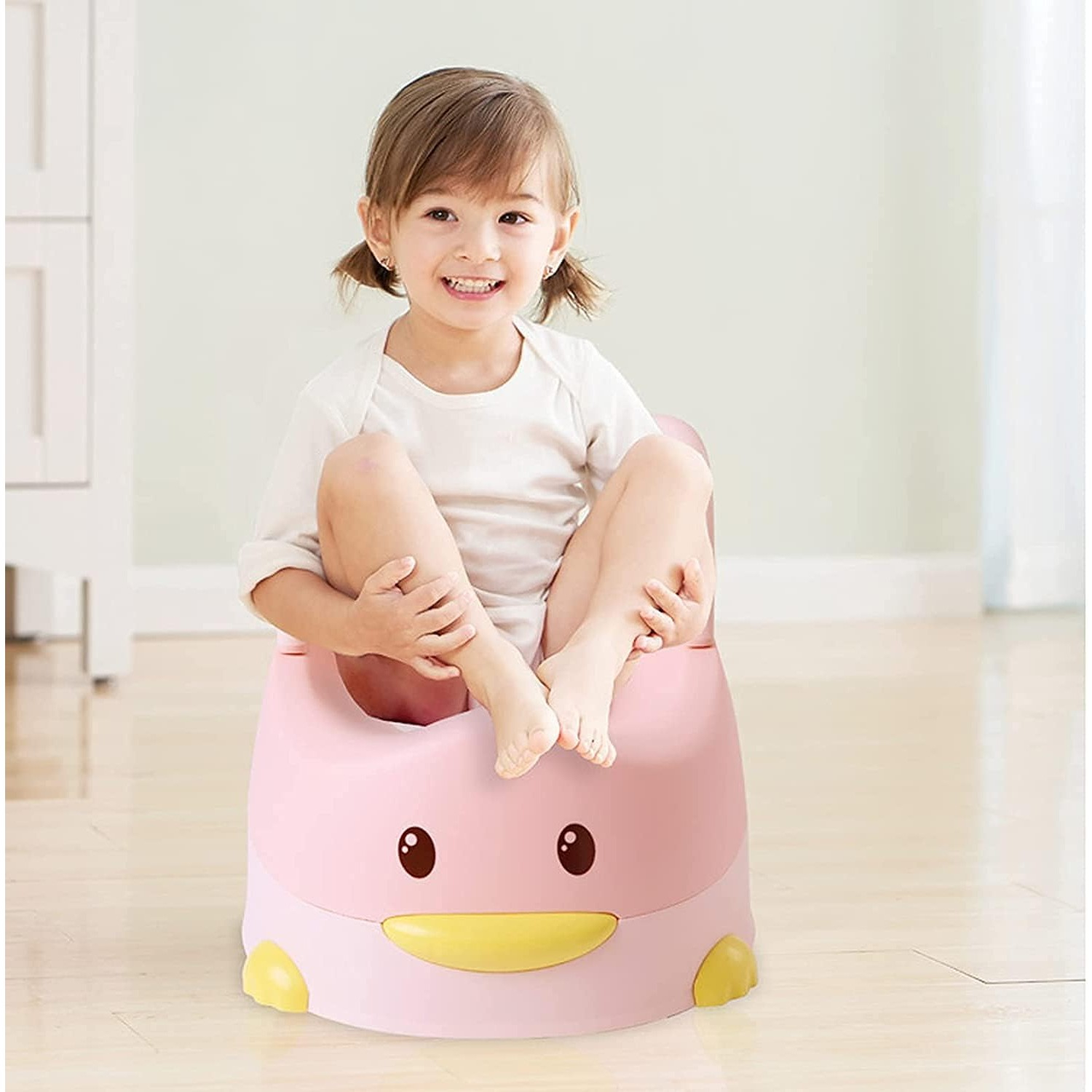 Oliță pentru Copii , +6 luni, Detasabilă, cu Capac, Antiderapantă, din Plastic, Colac Moale, Model Rățușcă, 38x32x30 cm
