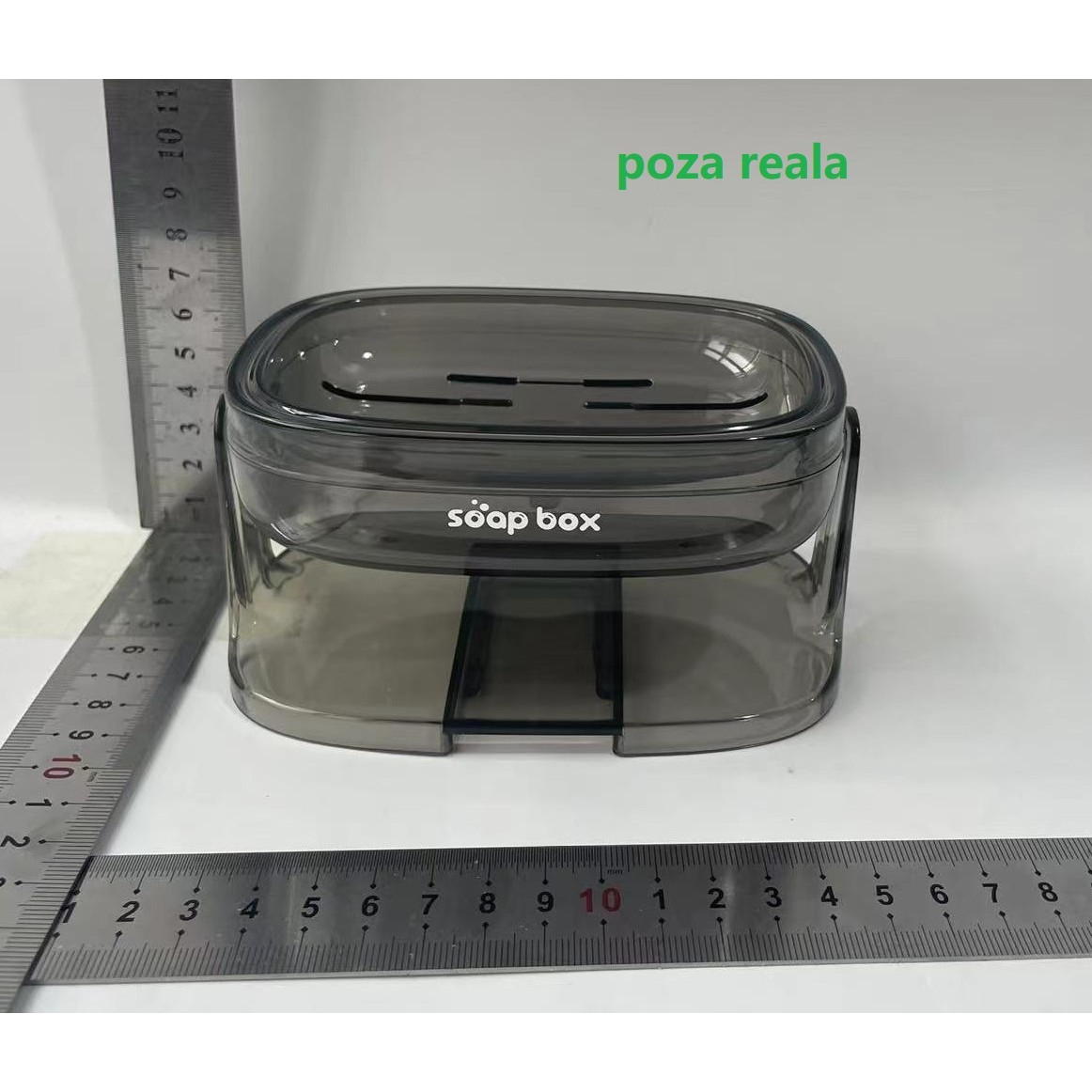 Savonieră cu Suport 2 în 1, , pentru Perete sau Blat, PET, Scurgere Optimă, Gri