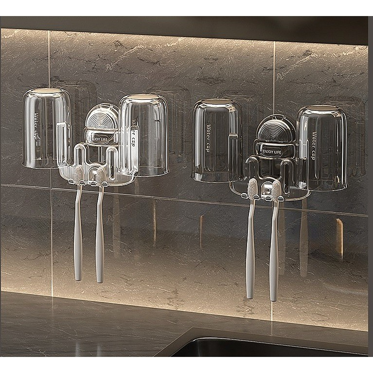 Suport Multifuncțional Dublu, Pahar și Suport pentru Periuță de Dinți, , Plastic