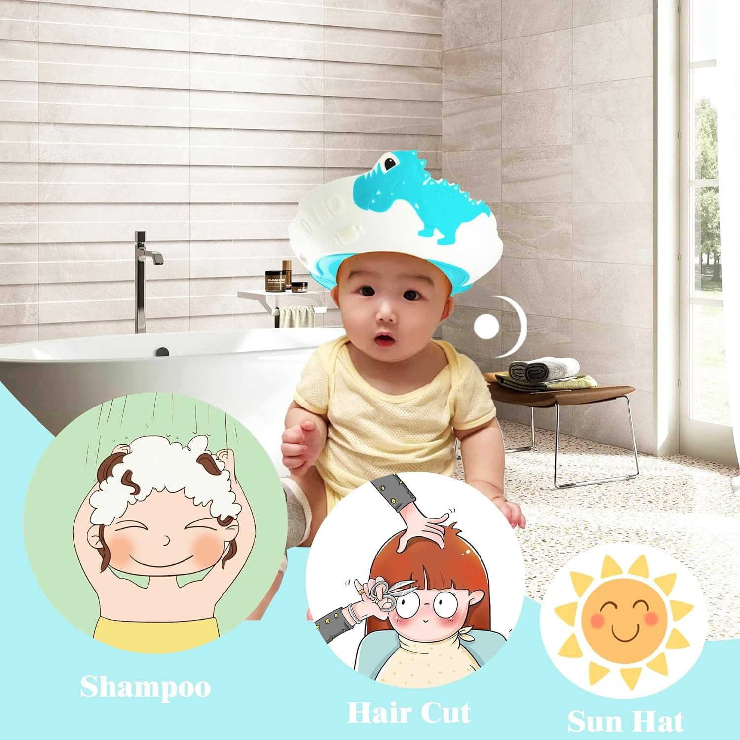 • Protecție pentru ochi și urechi: Viziera previne intrarea apei și a șamponului în ochii și urechile sensibile ale bebelușului, asigurând o baie confortabilă și plăcută.