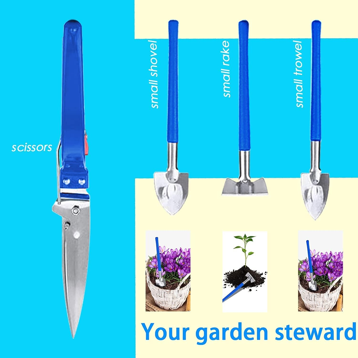Set 10 Unelte de Gradina, , pentru Plantare Prelucrare Sol si Ingrijire Plante, Manere Albastre, Material PVC si Otel Inoxidabil, Cutie Inclusa, 37x28x7 cm, Negru