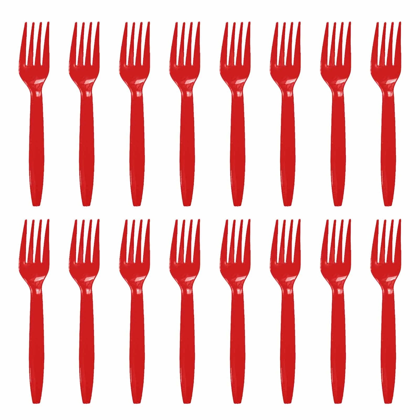 Set 16 Furculițe de Unică Folosință, , din Plastic, 15 cm, Roșu