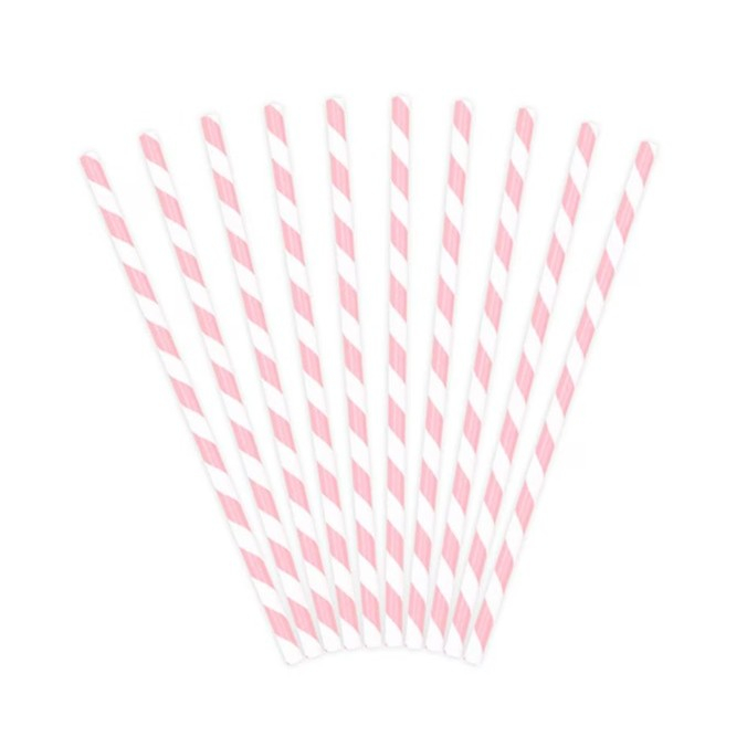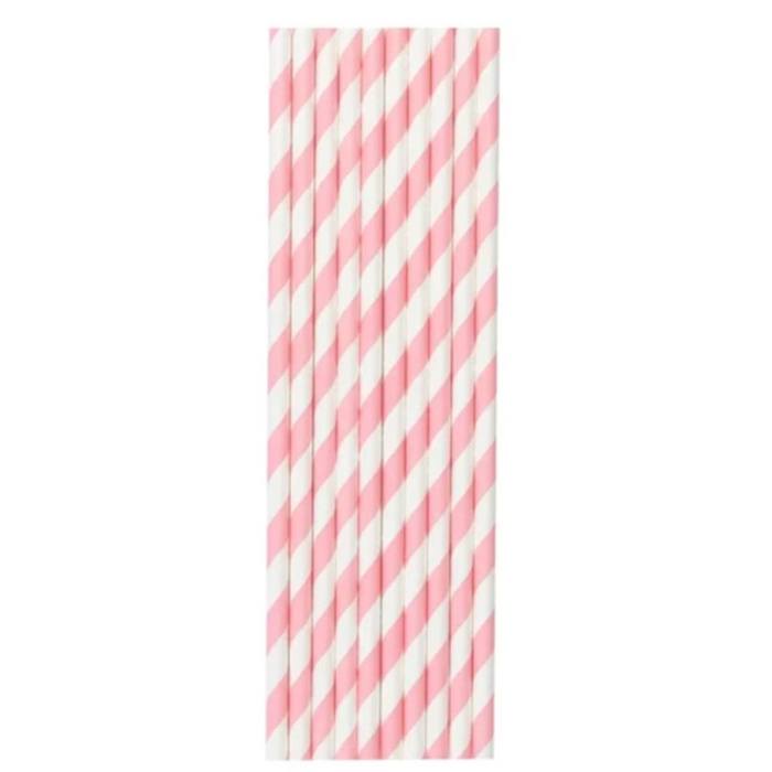 Set 25 Paie, , din Hartie, 20 cm, Model cu Dungi, Alb/Roz