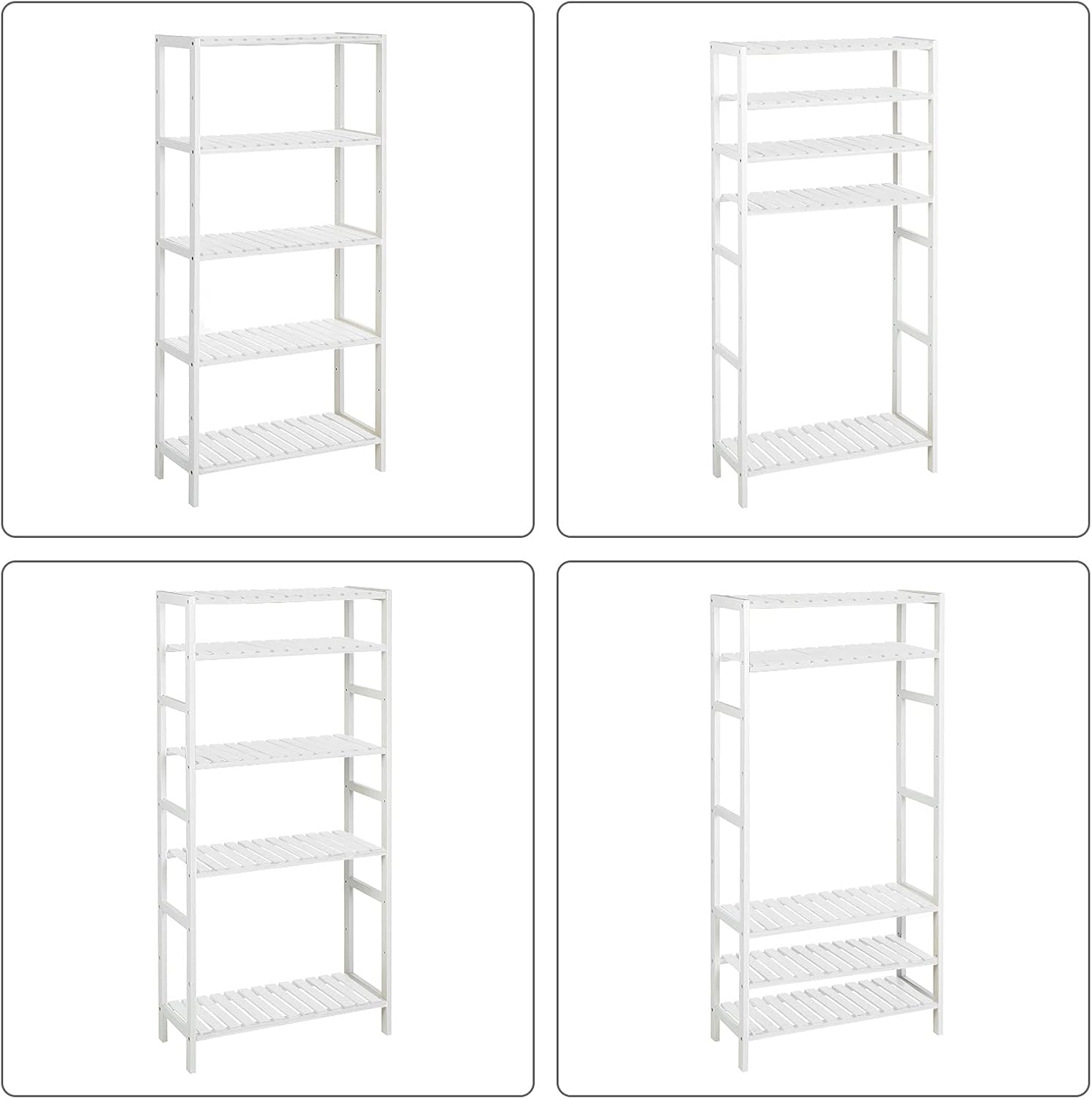SONGMICS Etajera 5 niveluri, din bambus, pozitii reglabile, multifunctionala pentru bucatarie sau hol, 60x26x130 cm, alb