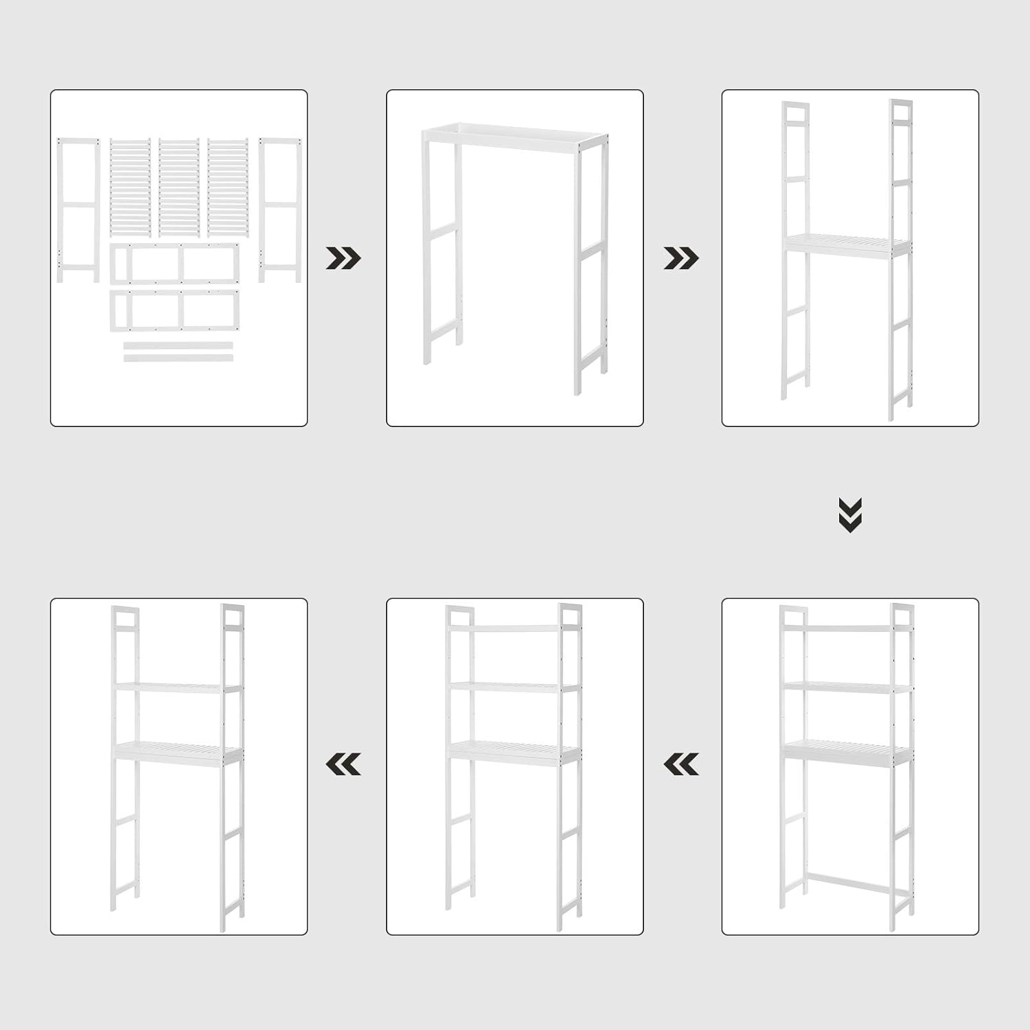 SONGMICS Raft de depozitare pentru baie, suprapunere peste masina spalat sau vas WC, din bambus, rafturi reglabile, 26x63x163 cm, alb