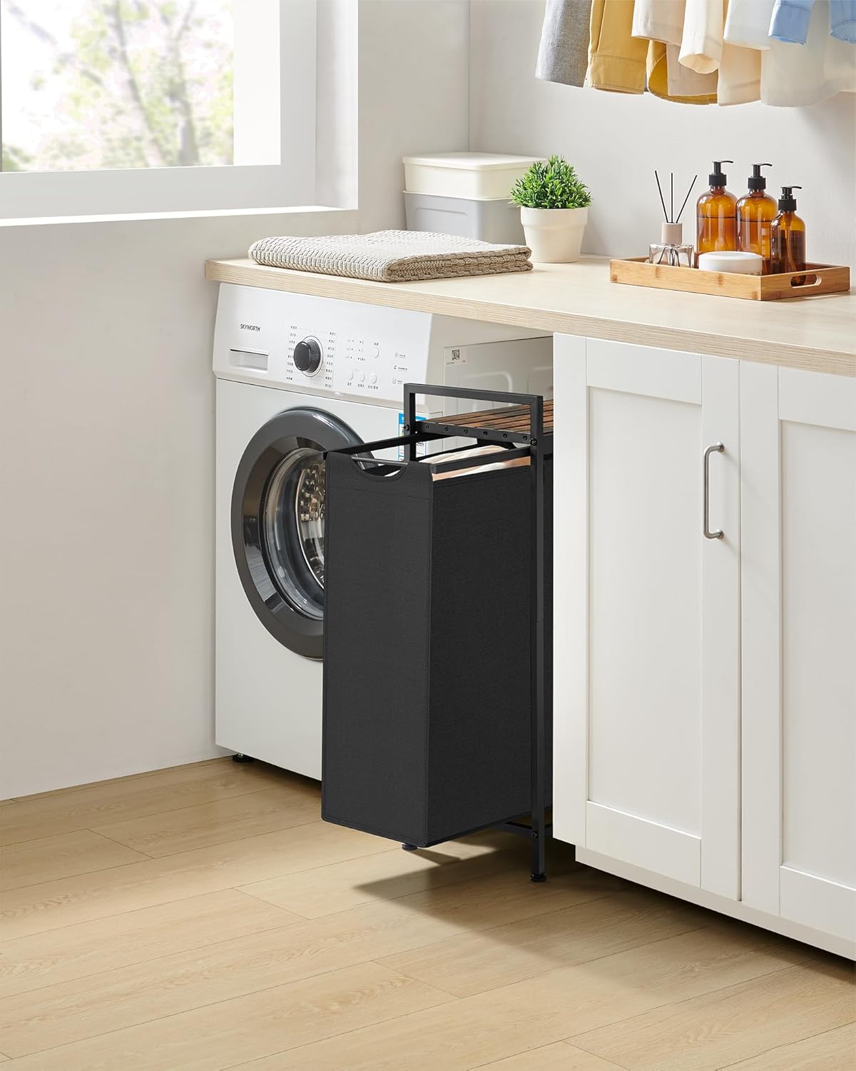 VASAGLE Cos rufe pentru spatii inguste, 47L cu sac textil detasabil, raft superior si cadru metalic, 42x22x75 cm, maro rustic