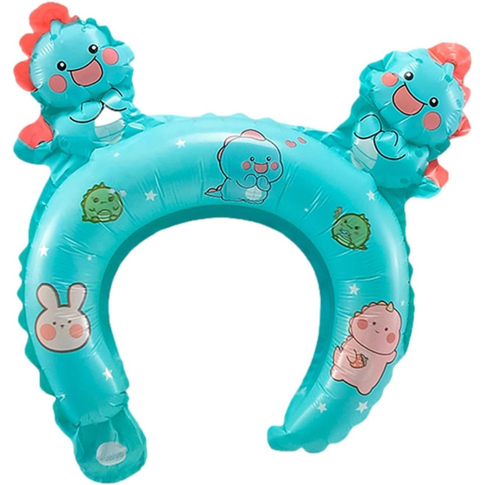 Balon din Folie Metalizata, , Tip Coronita cu Urechi, Model Dinozauri, Ambalaj Individual, Pai Inclus, Umflare cu Aer sau Heliu, 29 x 26.5 cm, Albastru