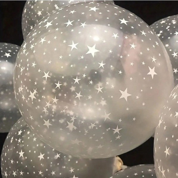 -10 Baloane din latex transparente, Culoare Stelute Albe, dimensiune 30 cm;