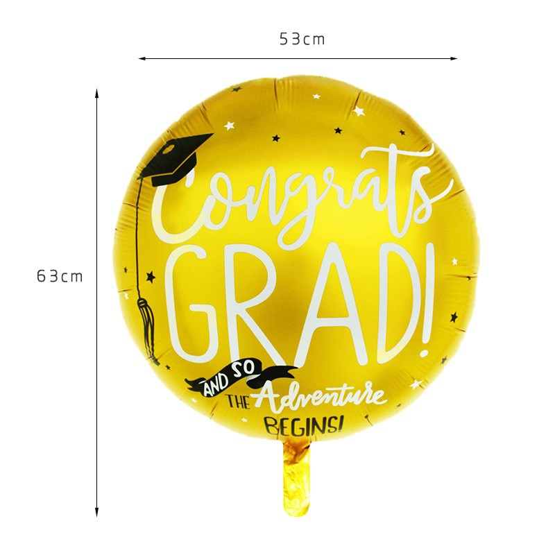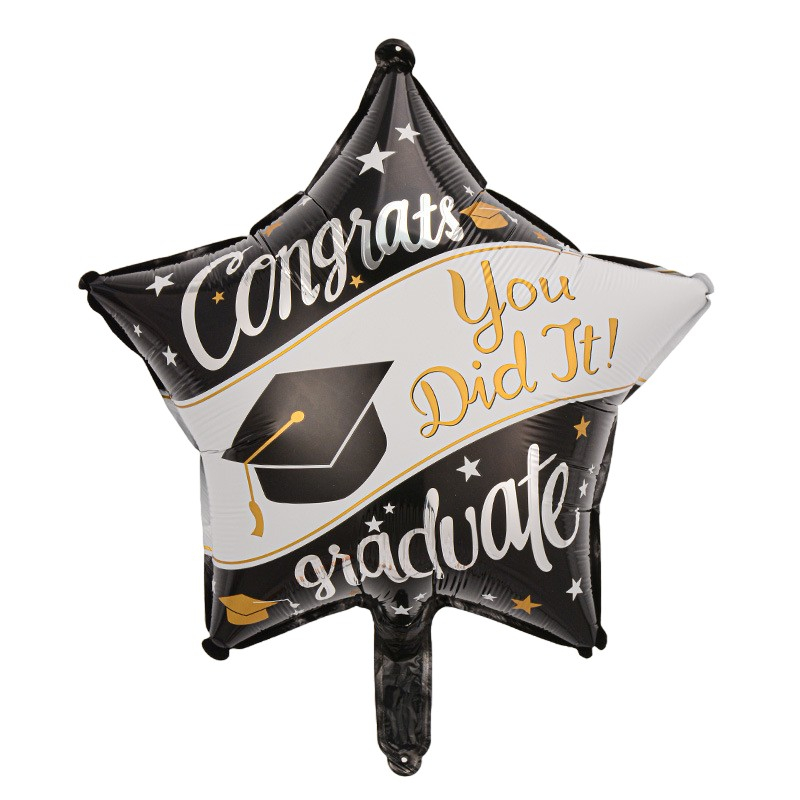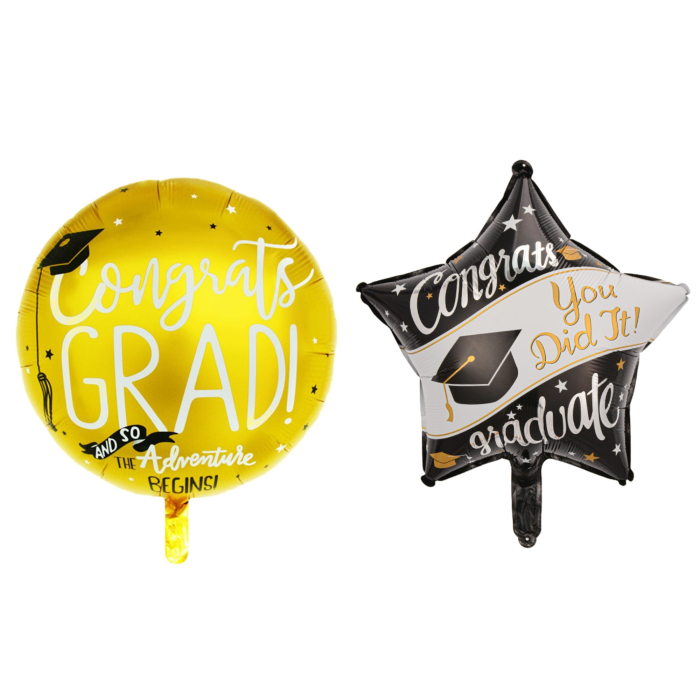 Set 2 Baloane din Folie Metalizata, , Figurine Stea 45 cm si Minge 63x53 xm, Model Absolvire, Ambalaj Individual, Pai Inclus, Umflare cu Aer sau Heliu, Multicolor
