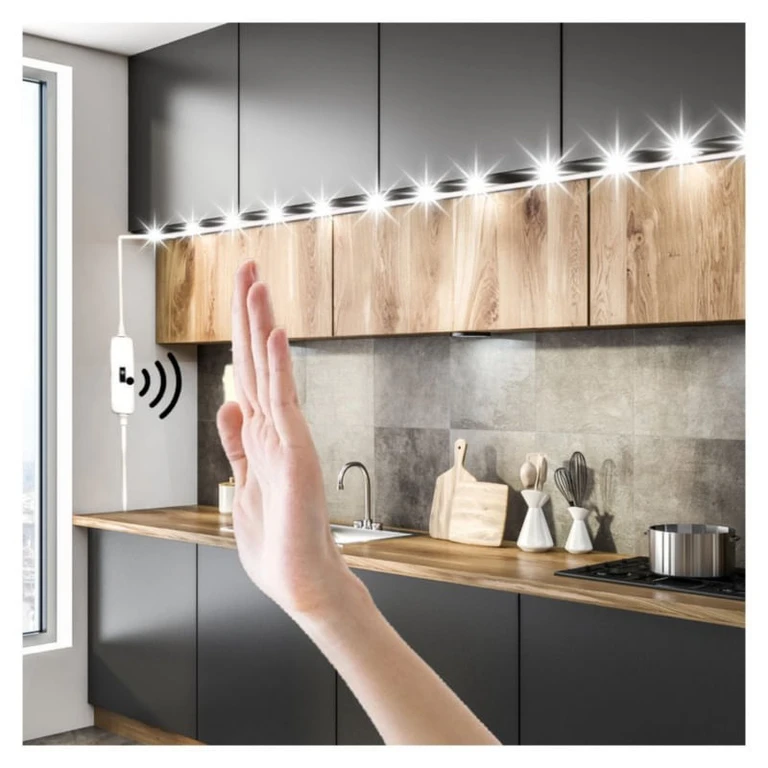 Da, senzorul detectează mișcarea mainii la 5-10 cm și pornește lumina automat, sau modifica instensitatea luminozitatii.