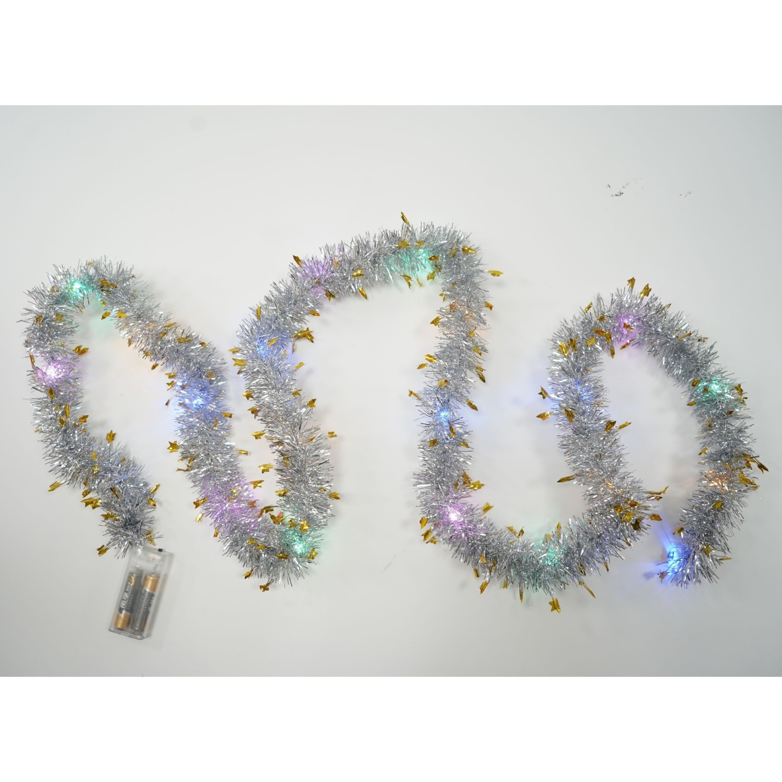 Beteala Craciun cu LED, Aurie, model cu stelute, 2 m x 5 cm, PVC, Sir, Artificiala,