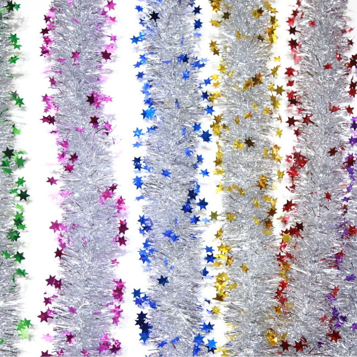 Adaugă un plus de strălucire decorațiunilor de sărbători cu această beteală de Crăciun cu LED de la . Realizată din PVC rezistent, cu model decorativ de steluțe și combinație elegantă mov-argintiu, este ideală pentru împodobirea bradului, ferestrelor sau spațiilor interioare și exterioare protejate.