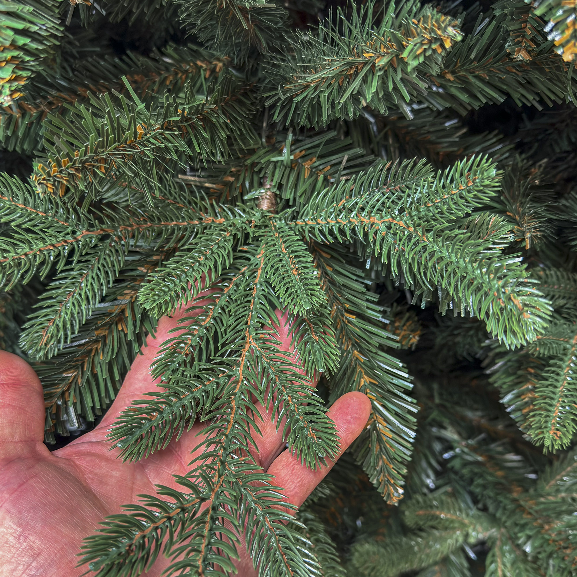 Imagine reala de prezentare pentru modelul Royal Felara, varianta 210cm PARAMETRII: – Inaltimea totala a bradului (dimensiune masurata de la podea pana in varf, cu tot cu suport):  210cm – Diametrul (latimea la baza in cel mai lat punct):  162cm – Numarul total al ramificatiilor:  1694  dintre care:– Crengute 2D, material PVC: 1374– Crengute 3D, material PE: 320– Suport inclus: metal– Zapada: NU– Alte decoratiuni: –– Sistem de prindere al crengilor cu balamale de tulpina tip "Umbrela" ce faciliteaza instalarea BRAD DE CRACIUN UNIC PENTRU CRACIUN UNIC Ce poate fi mai fermecator decat atmosfera unica a Craciunului? Si probabil ca niciunul dintre noi nu se indoieste ca un brad splendid impodobit este cel mai important element care construieste aceasta atmosfera magica de Craciun. La urma urmei, ritualul anual al impodobirii in familie a bradului de Craciun este unul dintre cele mai de neuitat momente, evocand multe amintiri frumoase. Bradul de Craciun prezentat va reflecta atmosfera minunata a Craciunului intr-un mod unic, si in acelasi timp atat de cunoscut si de indragit, subliniindu-i caldura si atmosfera de familie. DESCOPERA AVANTAJELE POMULUI NOSTRU DE CRACIUN – manopera precisa, imbinand soliditatea cu eleganta– densitate mare de ramuri si ace– distributie uniforma a acelor pe toata ramura – fara goluri– spatiu liber sub etajul inferior pentru cadouri– posibilitate de modelare a crengutelor in mai multe moduri– varietatea si realismul capetelor de crenguta– culoarea acelor imitand perfect acele naturale– diferentierea ramurilor – in functie de nivelul de inaltime– grosimea si durabilitatea firelor– fiabilitatea intregii structuri – arborele este aproape imposibil de distins de brazii naturali Cu bradul Christmas Deluxe by Sersimo® – un element inseparabil al Craciunului – veti petrece aceasta perioada magica de iarna intr-o aura de bucurie si caldura. Ganditi-va doar cat de frumos vor arata decoratiunile – stralucitoare, presarate cu sclipici, incalzind interiorul. Chiar si oamenii care nu impartasesc entuziasmul de Craciun recunosc ca un brad de Craciun impodobit frumos creeaza o atmosfera aparte. Cel mai mare avantaj al bradului nostru de Craciun este numarul mare de ramuri dens aranjate. Datorita densitatii si elegantei sale captivante, nu necesita prezenta a numeroase decoratiuni, fiind cu adevarat un decor grozav al oricarui interior! Etajul cel mai de jos al pomului de Craciun este la inaltimea potrivita, astfel incat sa puteti pune cu usurinta cadourile de Craciun sub el.Crengile pot fi indoite cu usurinta in diferite directii pentru a modela diferitele ramuri ale pomului si a le da forme diferite. Crengutele individuale au finaluri realiste si variate, iar niciuna nu este taiata intr-un mod artificial si inestetic. Culoarea lor intr-un mod extrem de realist imita culoarea reala a coniferelor si nu se estompeaza in timp. Sarma ascunsa cu grija nu se vede prin ace si, in acelasi timp, este suficient de groasa si rezistenta pentru ca bradul sa va serveasca ani de zile! Ace din folie PVC, puternice si durabile, sunt in acelasi timp extrem de placute la atingere. Deoarece bradul de Craciun – spre deosebire de copacii adevarati – nu ii pierde, nu va fi nevoie sa aspirati camera in mod regulat. Mai mult decat atat, acele sunt distribuite uniform pe toata lungimea ramurii, garantand astfel un efect vizual de densitate, fara goluri.https://youtube.com/shorts/yqL_opkdrcE