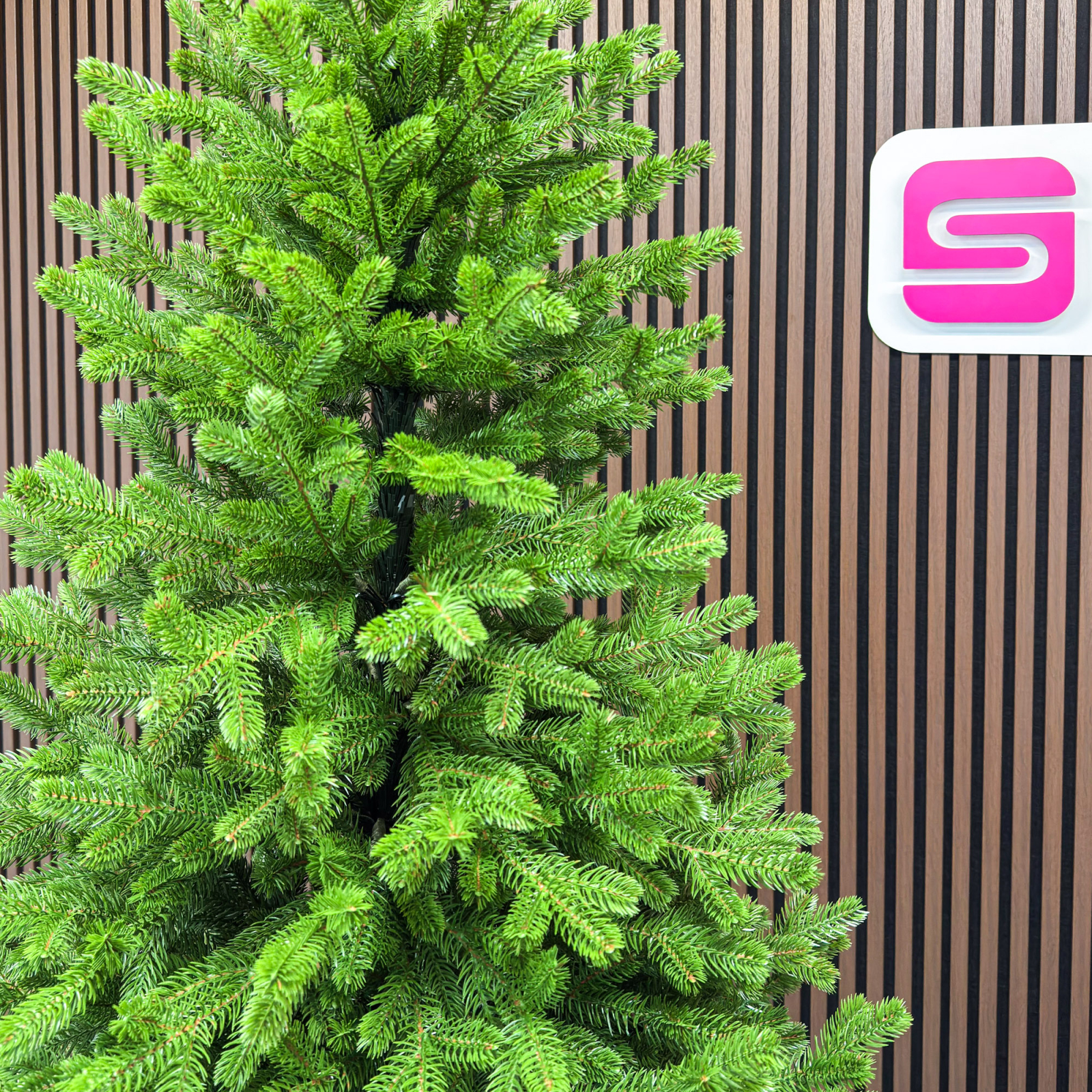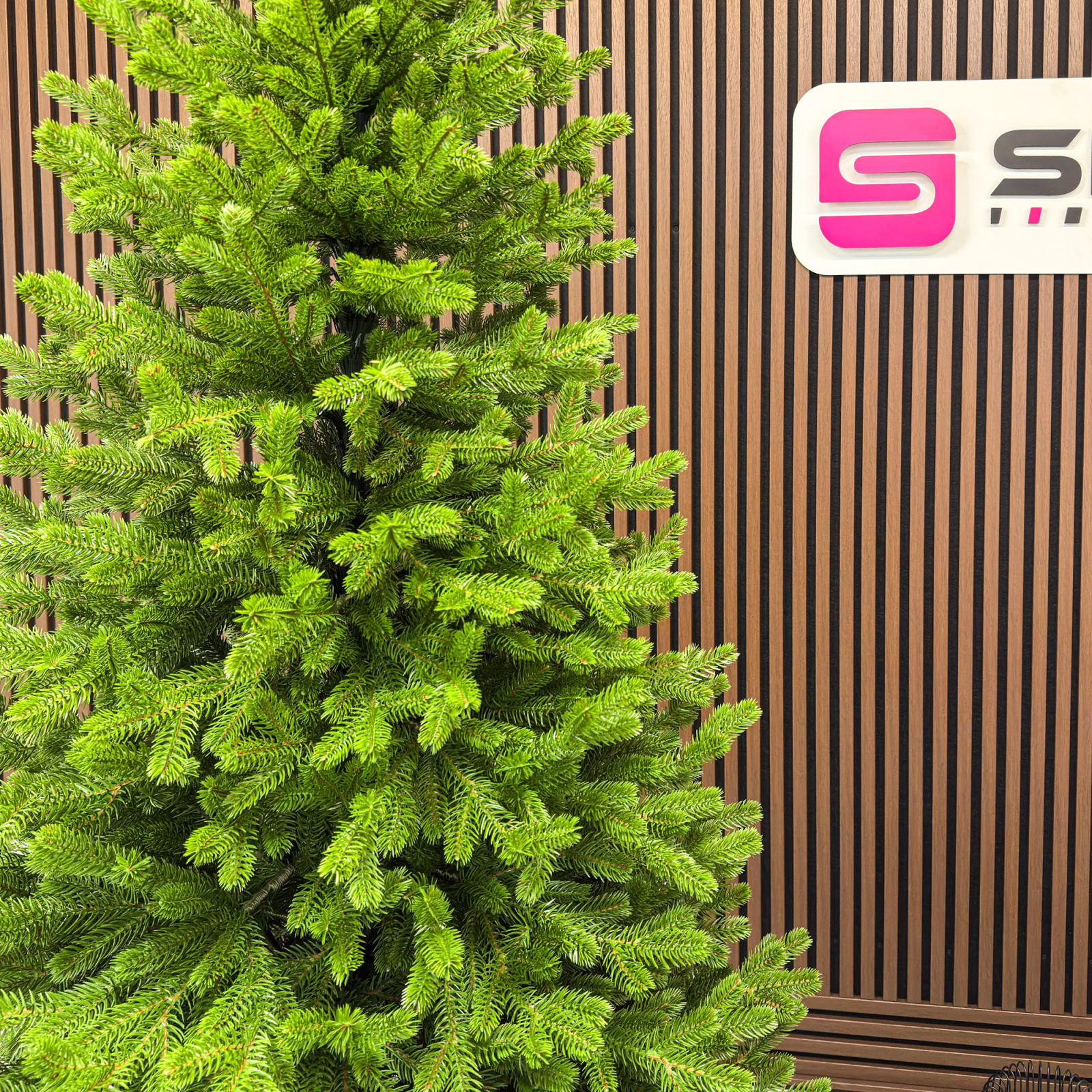 Imagine reala de prezentare pentru modelul Alindra Elite, verde, integral 3D, 210 cm PARAMETRII: – Inaltimea totala a bradului (dimensiune masurata de la podea pana in varf, cu tot cu suport): 210 cm – Diametrul (latimea la baza in cel mai lat punct):  100 cm – Numarul total al ramificatiilor: 650  dintre care:– Crengute 2D, material PVC: -– Crengute 3D, material PE: 650– Suport inclus: metal– Zapada: NU– Alte decoratiuni: -– Greutate (fara ambalaj): 14 kg– Dimensiune ambalaj carton: 31 x 31 x 125 cm– Sistem instalare: crengi atasate de tulpina BRAD DE CRACIUN UNIC PENTRU CRACIUN UNIC Ce poate fi mai fermecator decat atmosfera unica a Craciunului? Si probabil ca niciunul dintre noi nu se indoieste ca un brad splendid impodobit este cel mai important element care construieste aceasta atmosfera magica de Craciun. La urma urmei, ritualul anual al impodobirii in familie a bradului de Craciun este unul dintre cele mai de neuitat momente, evocand multe amintiri frumoase. Bradul de Craciun prezentat va reflecta atmosfera minunata a Craciunului intr-un mod unic, si in acelasi timp atat de cunoscut si de indragit, subliniindu-i caldura si atmosfera de familie. DESCOPERA AVANTAJELE POMULUI NOSTRU DE CRACIUN – manopera precisa, imbinand soliditatea cu eleganta– densitate mare de ramuri si ace– distributie uniforma a acelor pe toata ramura – fara goluri– spatiu liber sub etajul inferior pentru cadouri– posibilitate de modelare a crengutelor in mai multe moduri– varietatea si realismul capetelor de crenguta– culoarea acelor imitand perfect acele naturale– diferentierea ramurilor – in functie de nivelul de inaltime– grosimea si durabilitatea firelor– fiabilitatea intregii structuri – arborele este aproape imposibil de distins de brazii naturali Cu bradul Christmas Deluxe by Sersimo® – un element inseparabil al Craciunului – veti petrece aceasta perioada magica de iarna intr-o aura de bucurie si caldura. Ganditi-va doar cat de frumos vor arata decoratiunile – stralucitoare, presarate cu sclipici, incalzind interiorul. Chiar si oamenii care nu impartasesc entuziasmul de Craciun recunosc ca un brad de Craciun impodobit frumos creeaza o atmosfera aparte. Cel mai mare avantaj al bradului nostru de Craciun este numarul mare de ramuri dens aranjate. Datorita densitatii si elegantei sale captivante, nu necesita prezenta a numeroase decoratiuni, fiind cu adevarat un decor grozav al oricarui interior! Etajul cel mai de jos al pomului de Craciun este la inaltimea potrivita, astfel incat sa puteti pune cu usurinta cadourile de Craciun sub el.Crengile pot fi indoite cu usurinta in diferite directii pentru a modela diferitele ramuri ale pomului si a le da forme diferite. Crengutele individuale au finaluri realiste si variate, iar niciuna nu este taiata intr-un mod artificial si inestetic. Culoarea lor intr-un mod extrem de realist imita culoarea reala a coniferelor si nu se estompeaza in timp. Sarma ascunsa cu grija nu se vede prin ace si, in acelasi timp, este suficient de groasa si rezistenta pentru ca bradul sa va serveasca ani de zile! Ace din folie PVC, puternice si durabile, sunt in acelasi timp extrem de placute la atingere. Deoarece bradul de Craciun – spre deosebire de copacii adevarati – nu ii pierde, nu va fi nevoie sa aspirati camera in mod regulat. Mai mult decat atat, acele sunt distribuite uniform pe toata lungimea ramurii, garantand astfel un efect vizual de densitate, fara goluri.