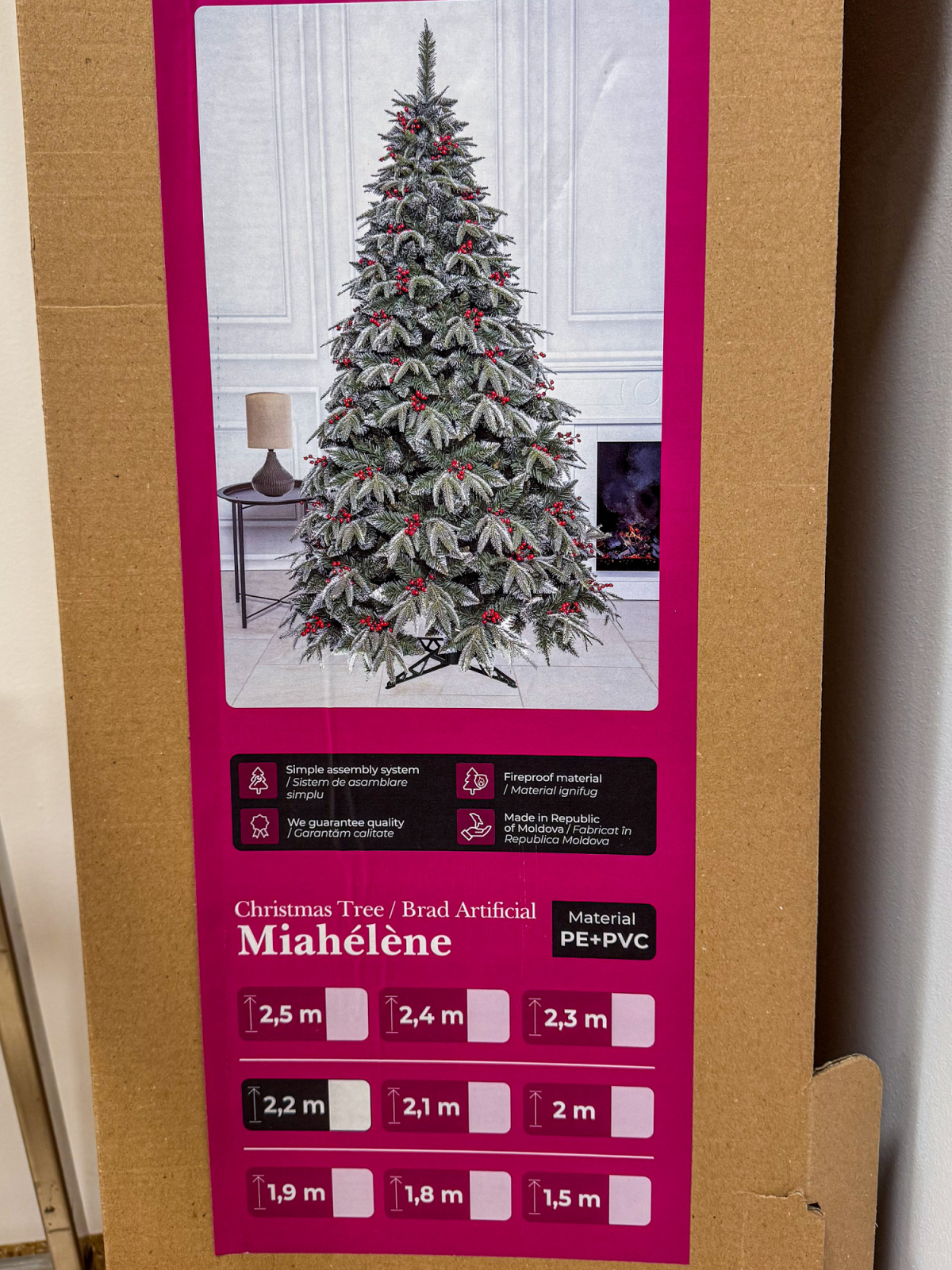 Imagine reala de prezentare pentru modelul Miahelene Elite, verde nins cu merisoare, mix 2D+3D, 220 cm PARAMETRII: – Inaltimea totala a bradului (dimensiune masurata de la podea pana in varf, cu tot cu suport): 220 cm – Diametrul (latimea la baza in cel mai lat punct):  130 cm – Numarul total al ramificatiilor: 1113 dintre care:– Crengute 2D, material PVC: 924– Crengute 3D, material PE: 189– Suport inclus: plastic– Zapada: DA (pe varfuri)– Alte decoratiuni: merisoare rosii– Greutate (fara ambalaj): 18 kg– Dimensiune ambalaj carton: 31 x 31 x 125 cm– Sistem instalare: crengi atasate de tulpina BRAD DE CRACIUN UNIC PENTRU CRACIUN UNIC Ce poate fi mai fermecator decat atmosfera unica a Craciunului? Si probabil ca niciunul dintre noi nu se indoieste ca un brad splendid impodobit este cel mai important element care construieste aceasta atmosfera magica de Craciun. La urma urmei, ritualul anual al impodobirii in familie a bradului de Craciun este unul dintre cele mai de neuitat momente, evocand multe amintiri frumoase. Bradul de Craciun prezentat va reflecta atmosfera minunata a Craciunului intr-un mod unic, si in acelasi timp atat de cunoscut si de indragit, subliniindu-i caldura si atmosfera de familie. DESCOPERA AVANTAJELE POMULUI NOSTRU DE CRACIUN – manopera precisa, imbinand soliditatea cu eleganta– densitate mare de ramuri si ace– distributie uniforma a acelor pe toata ramura – fara goluri– spatiu liber sub etajul inferior pentru cadouri– posibilitate de modelare a crengutelor in mai multe moduri– varietatea si realismul capetelor de crenguta– culoarea acelor imitand perfect acele naturale– diferentierea ramurilor – in functie de nivelul de inaltime– grosimea si durabilitatea firelor– fiabilitatea intregii structuri – arborele este aproape imposibil de distins de brazii naturali Cu bradul Christmas Deluxe by Sersimo® – un element inseparabil al Craciunului – veti petrece aceasta perioada magica de iarna intr-o aura de bucurie si caldura. Ganditi-va doar cat de frumos vor arata decoratiunile – stralucitoare, presarate cu sclipici, incalzind interiorul. Chiar si oamenii care nu impartasesc entuziasmul de Craciun recunosc ca un brad de Craciun impodobit frumos creeaza o atmosfera aparte. Cel mai mare avantaj al bradului nostru de Craciun este numarul mare de ramuri dens aranjate. Datorita densitatii si elegantei sale captivante, nu necesita prezenta a numeroase decoratiuni, fiind cu adevarat un decor grozav al oricarui interior! Etajul cel mai de jos al pomului de Craciun este la inaltimea potrivita, astfel incat sa puteti pune cu usurinta cadourile de Craciun sub el.Crengile pot fi indoite cu usurinta in diferite directii pentru a modela diferitele ramuri ale pomului si a le da forme diferite. Crengutele individuale au finaluri realiste si variate, iar niciuna nu este taiata intr-un mod artificial si inestetic. Culoarea lor intr-un mod extrem de realist imita culoarea reala a coniferelor si nu se estompeaza in timp. Sarma ascunsa cu grija nu se vede prin ace si, in acelasi timp, este suficient de groasa si rezistenta pentru ca bradul sa va serveasca ani de zile! Ace din folie PVC, puternice si durabile, sunt in acelasi timp extrem de placute la atingere. Deoarece bradul de Craciun – spre deosebire de copacii adevarati – nu ii pierde, nu va fi nevoie sa aspirati camera in mod regulat. Mai mult decat atat, acele sunt distribuite uniform pe toata lungimea ramurii, garantand astfel un efect vizual de densitate, fara goluri.