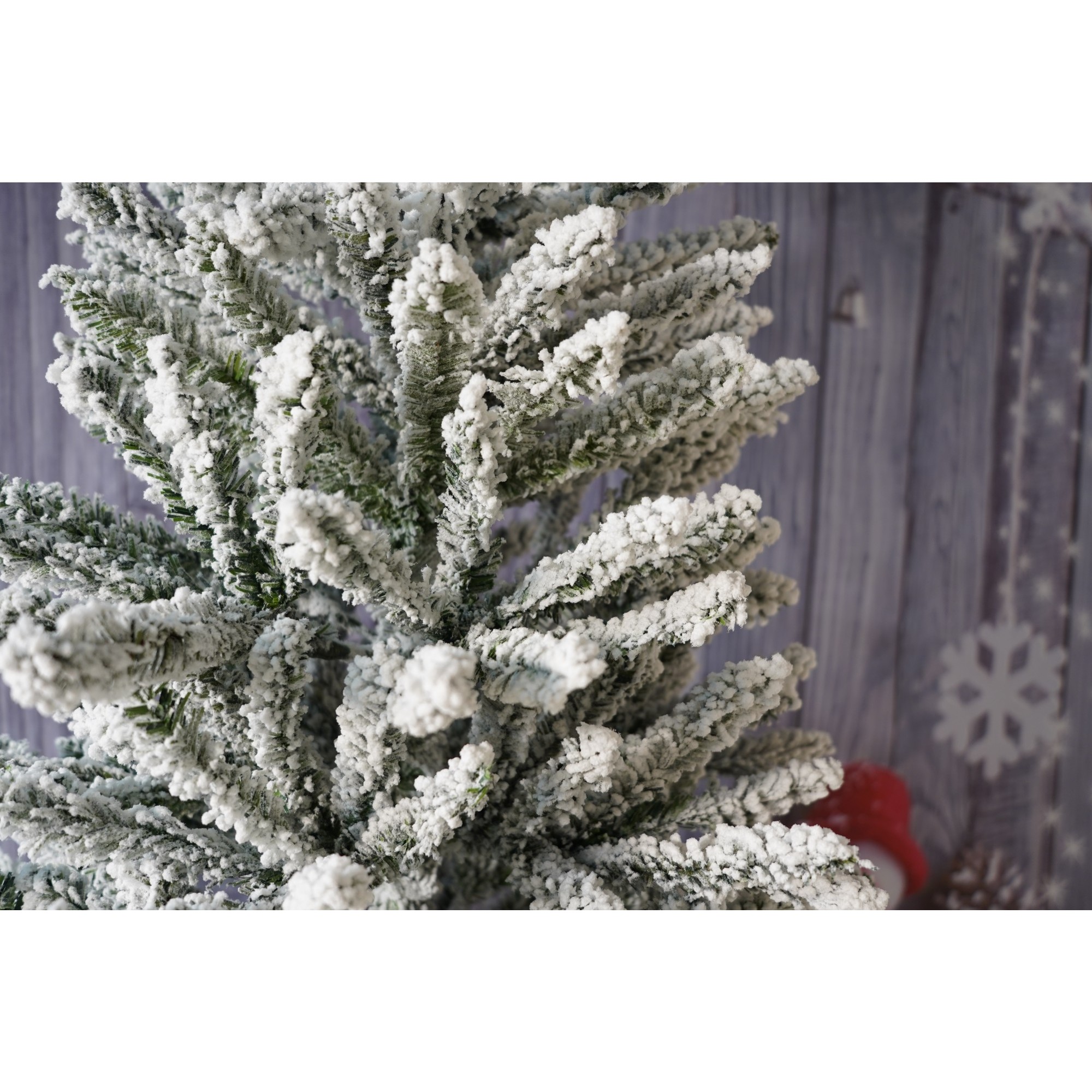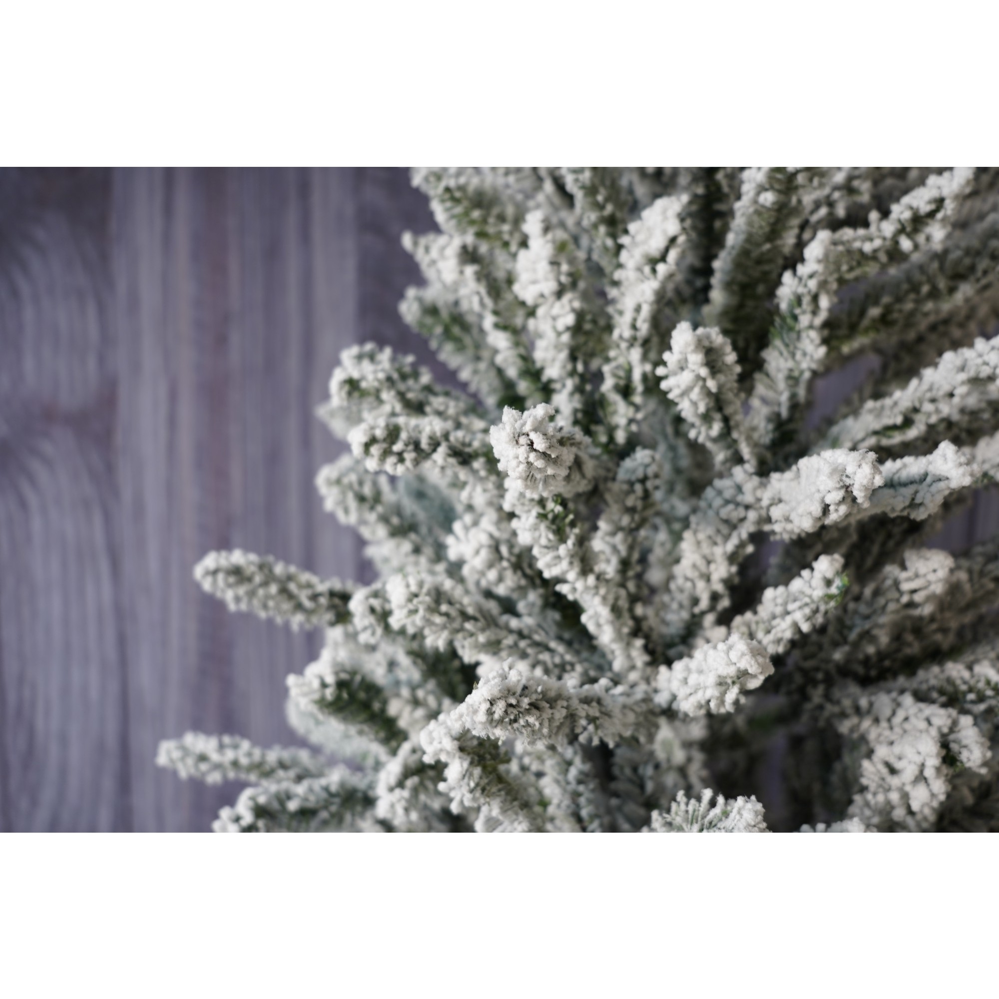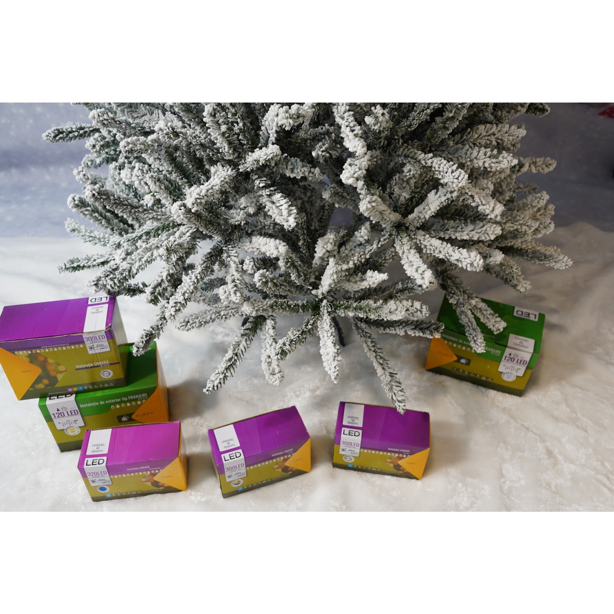 Brad caracterizat prin simplitatea și eleganța sa care asigura cea mai buna combinatie pret-calitate, pentru perete/colt, , culoare verde, pulverizat alb-tip zapada, diametrul inferior 110cm, marimea 180cm