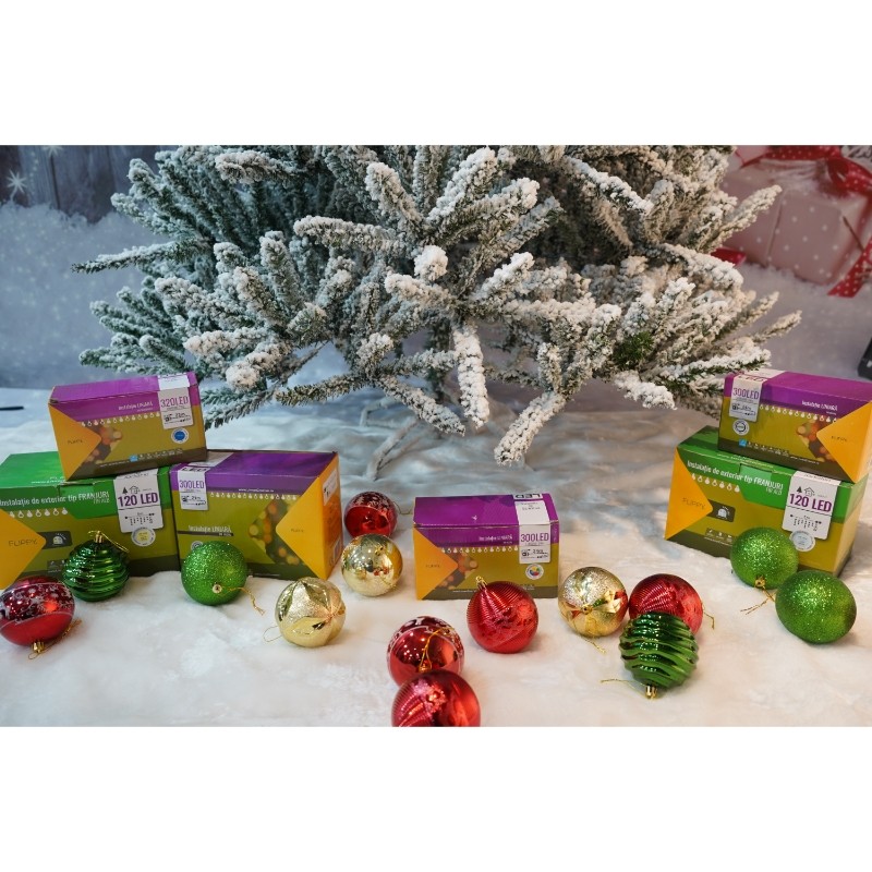 Brad caracterizat prin simplitatea ศi eleganศa sa care asigura cea mai buna combinatie pret-calitate, pentru perete/colt, , culoare verde, pulverizat alb-tip zapada, diametrul inferior 130cm, marimea 210cm